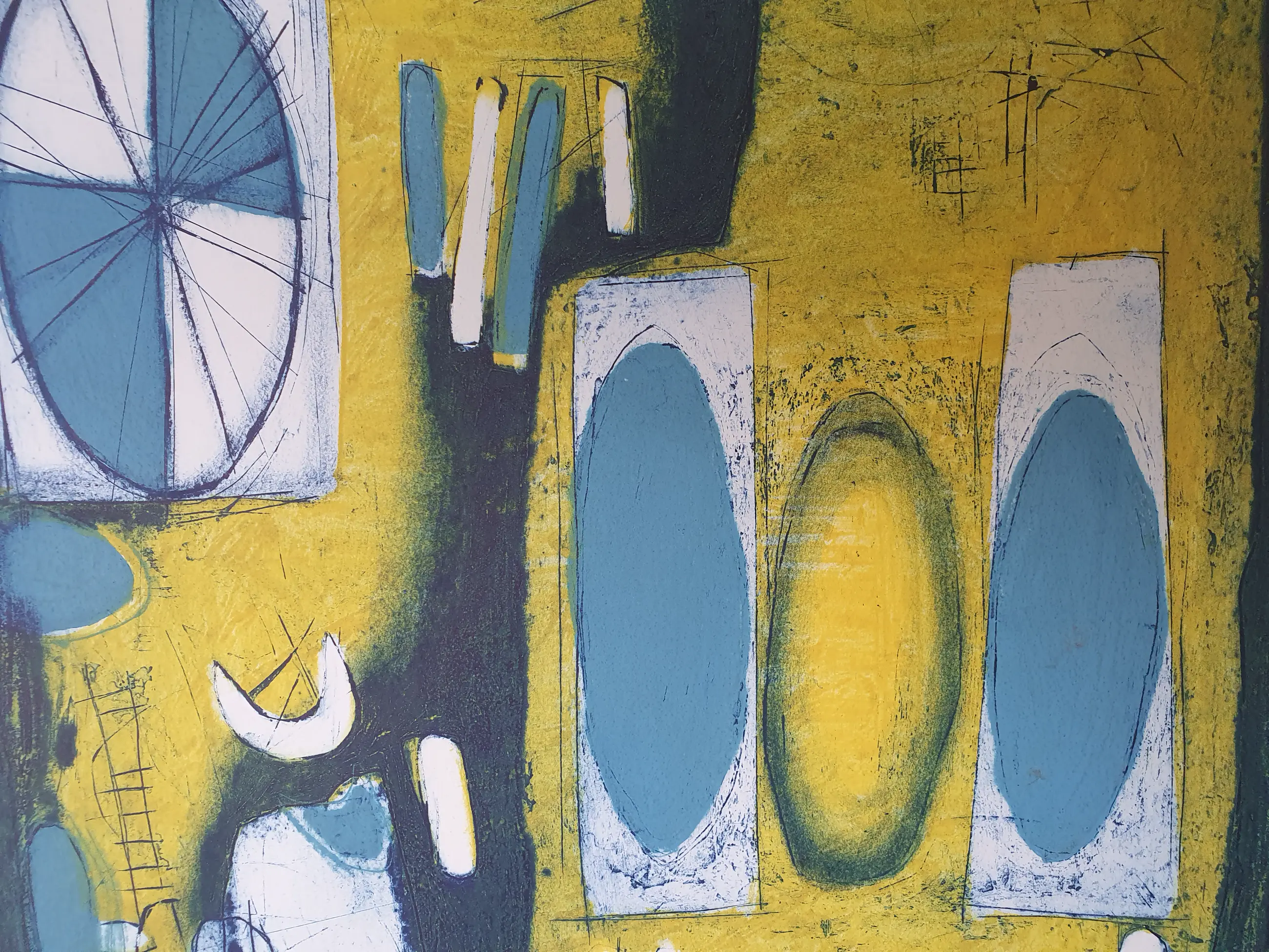Grote kleurets op papier, gemaakt door Hans Heijman in 1999. Dit is nummer 17 in een oplage van 30 exemplaren. Met potlood gesigneerd aan de onderkant. Inclusief origineel passepartout (helaas was de lijst beschadigd).