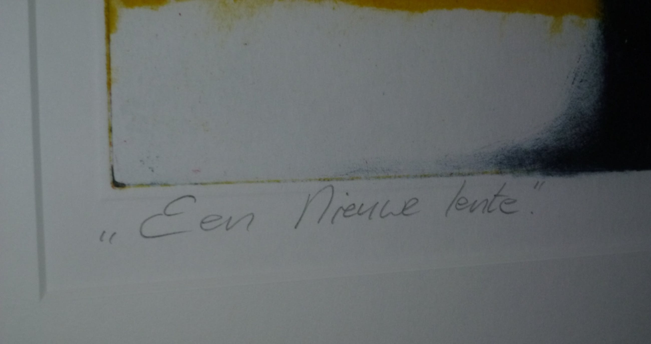 De ets een nieuwe lente uit 1998 is afkomstig uit zijn werken waarin hij een andere weg lijkt ingeslagen. De naam van deze kleurets verwijst niet meer naar het landschap, maar naar de inhoud van het werk zelf. Het is veel abstracter van karakter met afwijkende kleuren zoals rood en geel.