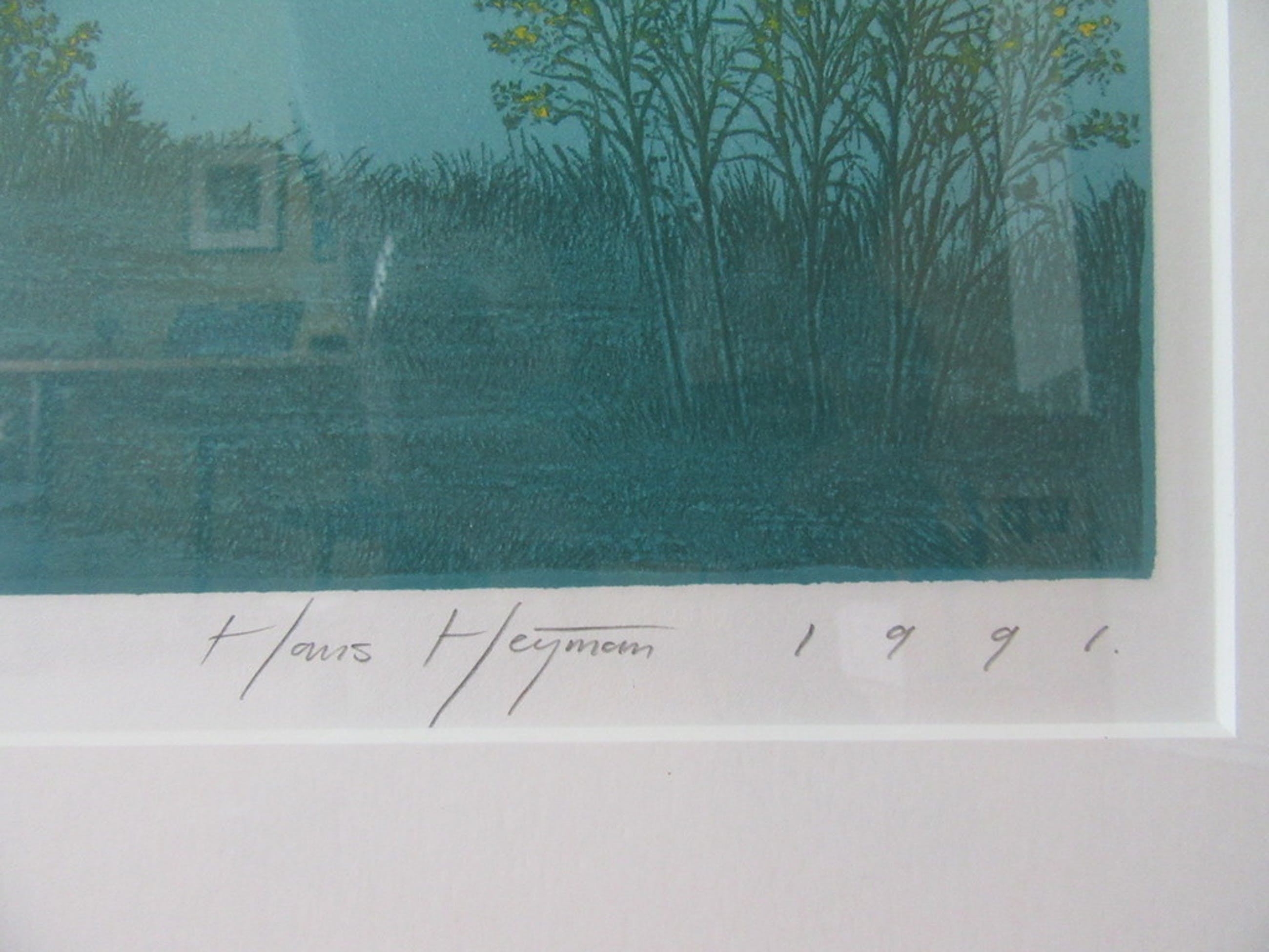 Kleurets uit 1991. In aluminium lijst 63 x 74 cm.