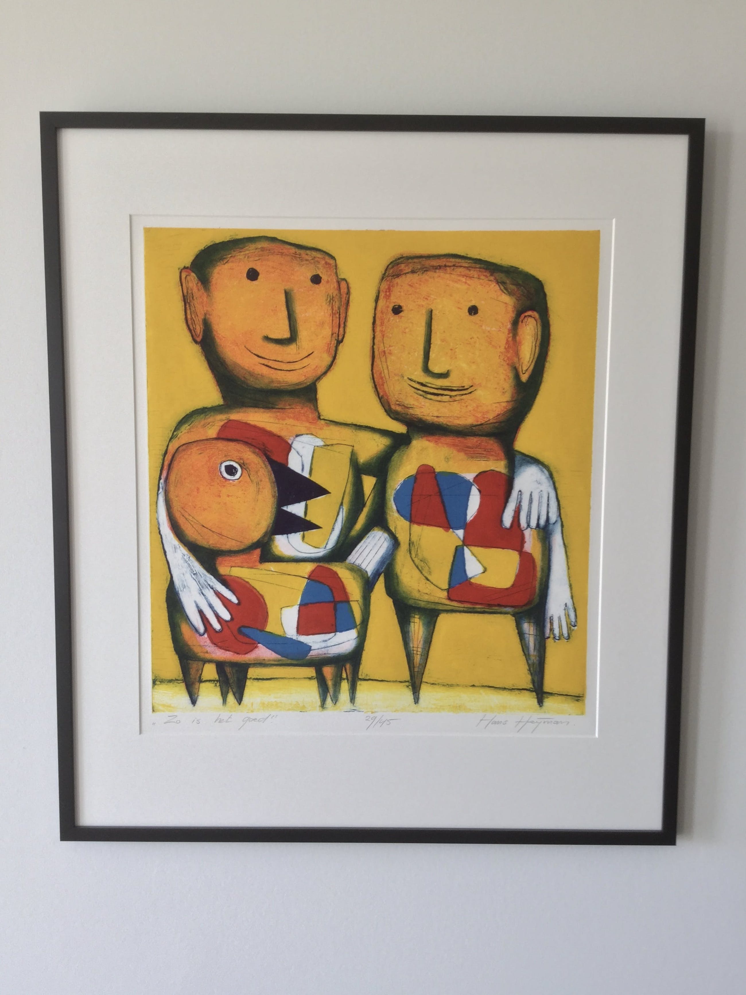 | Werk is recent professioneel ingelijst met artglas cq museumglas lijst is zwart aluminium met schuifbaar ophang systeem mooi geheel | |