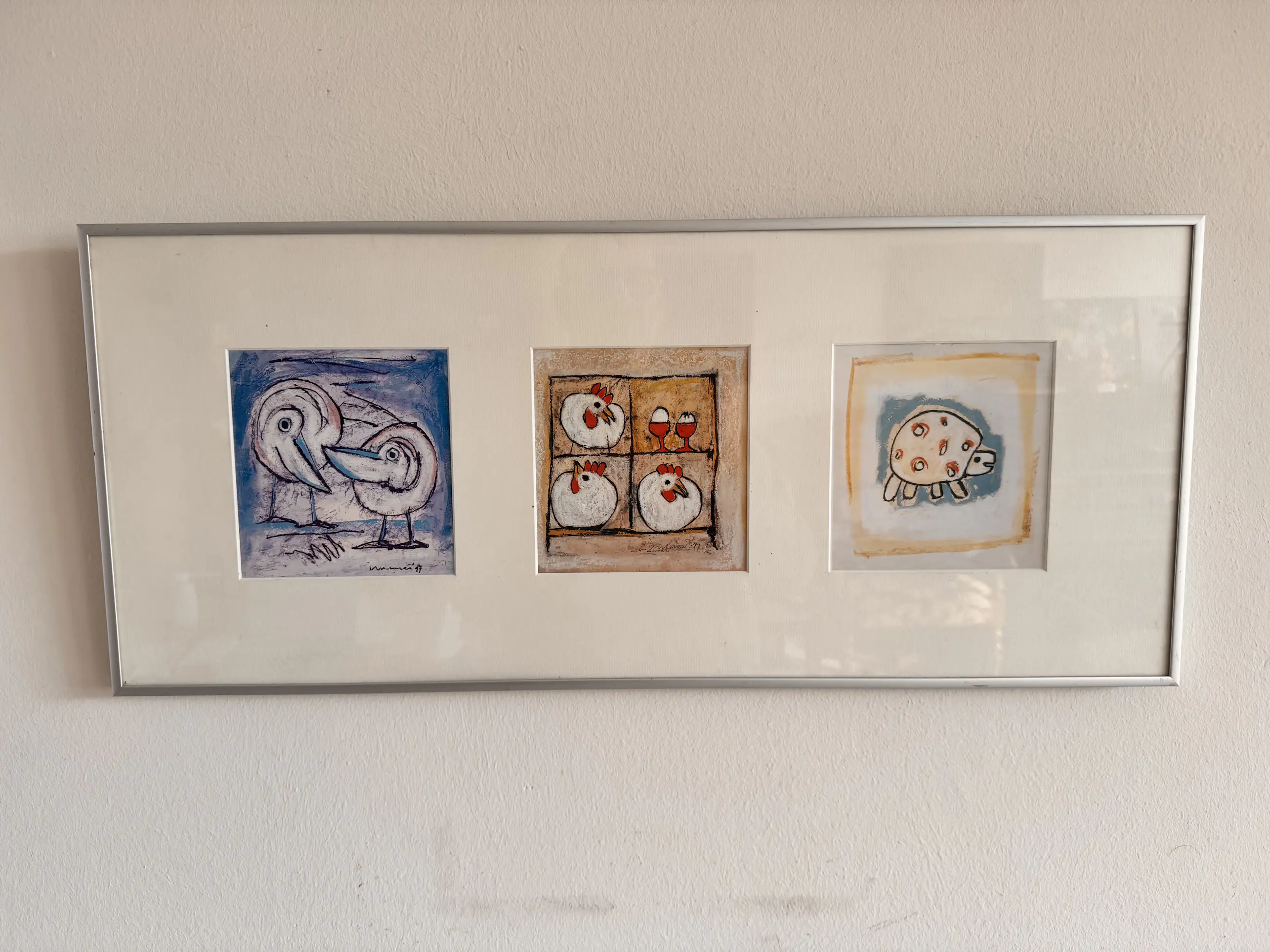 Hans Innemée 3-luik zeefdruk in passe-partout setting in aluminium lijst in super kwaliteit voorzien van signatuur.