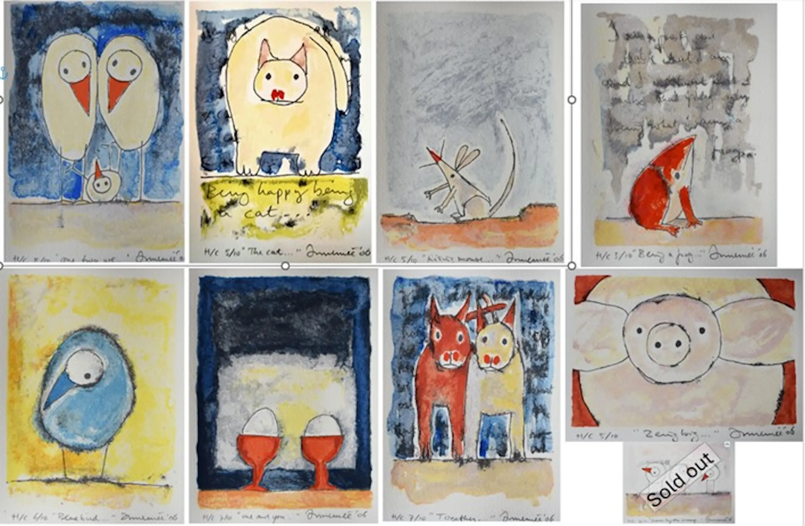 Blue Bird is onderdeel van een in 2006 door Hans Innemee gemaakte serie (9) verfijnde tekeningen die met waterverf werden ingekleurd. Daarvan zijn in een oplage van 50 st. zeefdrukken gemaakt, o.a. voor de Japanse markt. U zult ze in Nederland niet of zelden aantreffen. Mooie werkjes ( inclusief boord 26 x 21 cm) die qua afwerking en materiaal afwijken van het meer reguliere werk. Van deze series zijn meerdere HC's gemaakt (Hors du Commerce). HC's gaan in eerste instantie meestal naar vrienden, relaties en/of de zeefdrukker maar komen vaak later ook in de handel terecht en vormen dan een collectors item (net als EA's). Wij hebben van deze serie meerdere HC's in collectie. Het HC nummer kan afwijken van het nummeropde afbeelding. Ze komen uit een map en zijn nooit eerder ingelijst geweest (dus als nieuw).