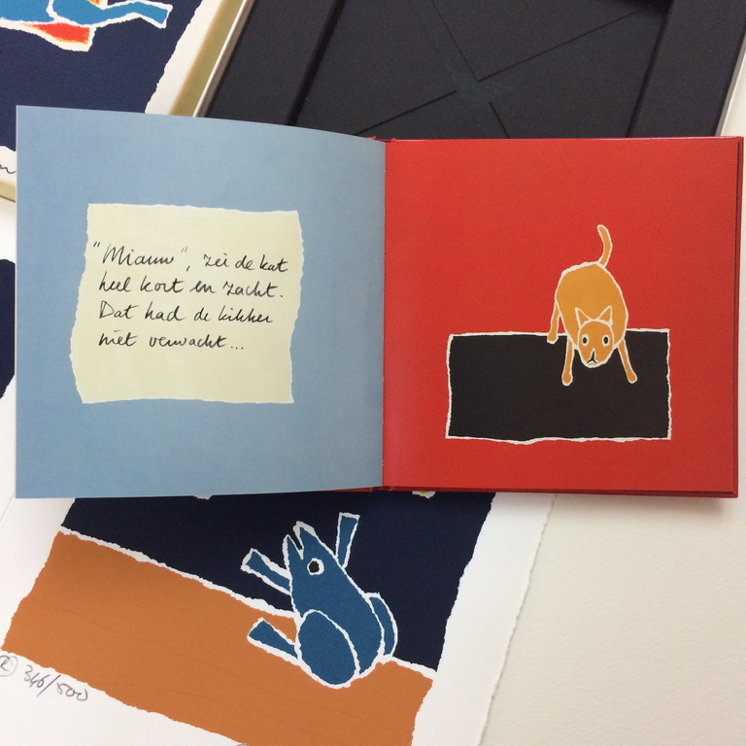 Materiaal: papier, kartonnendeksel is ook zeefdruk met 2 zeefdrukken op papier