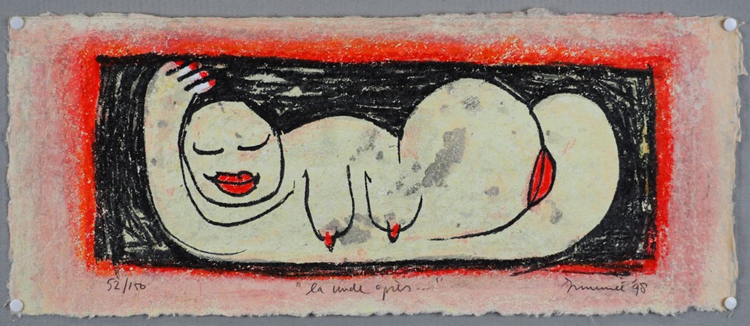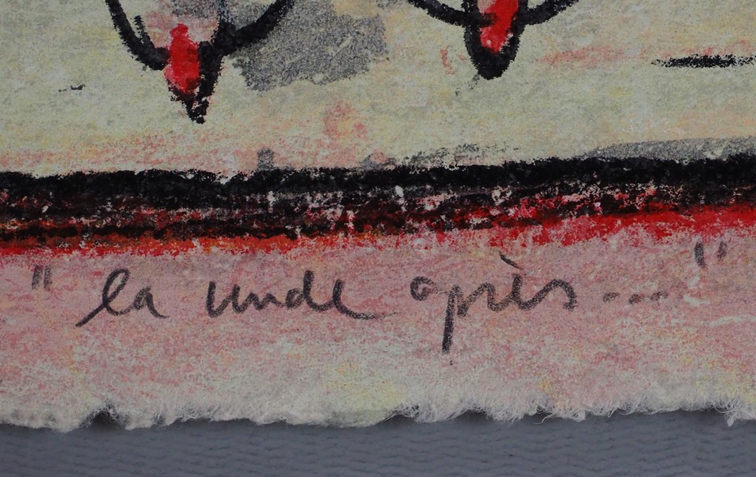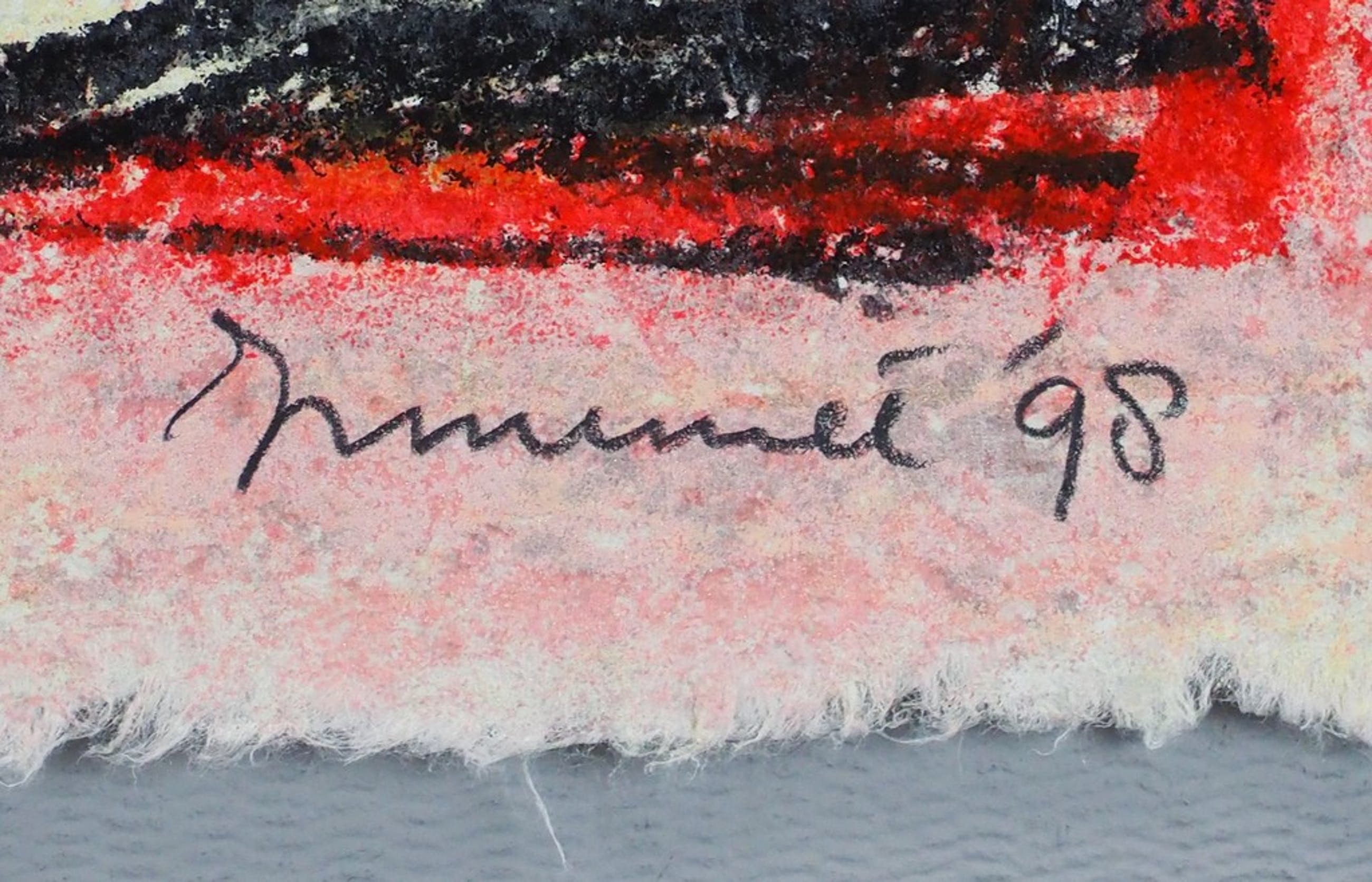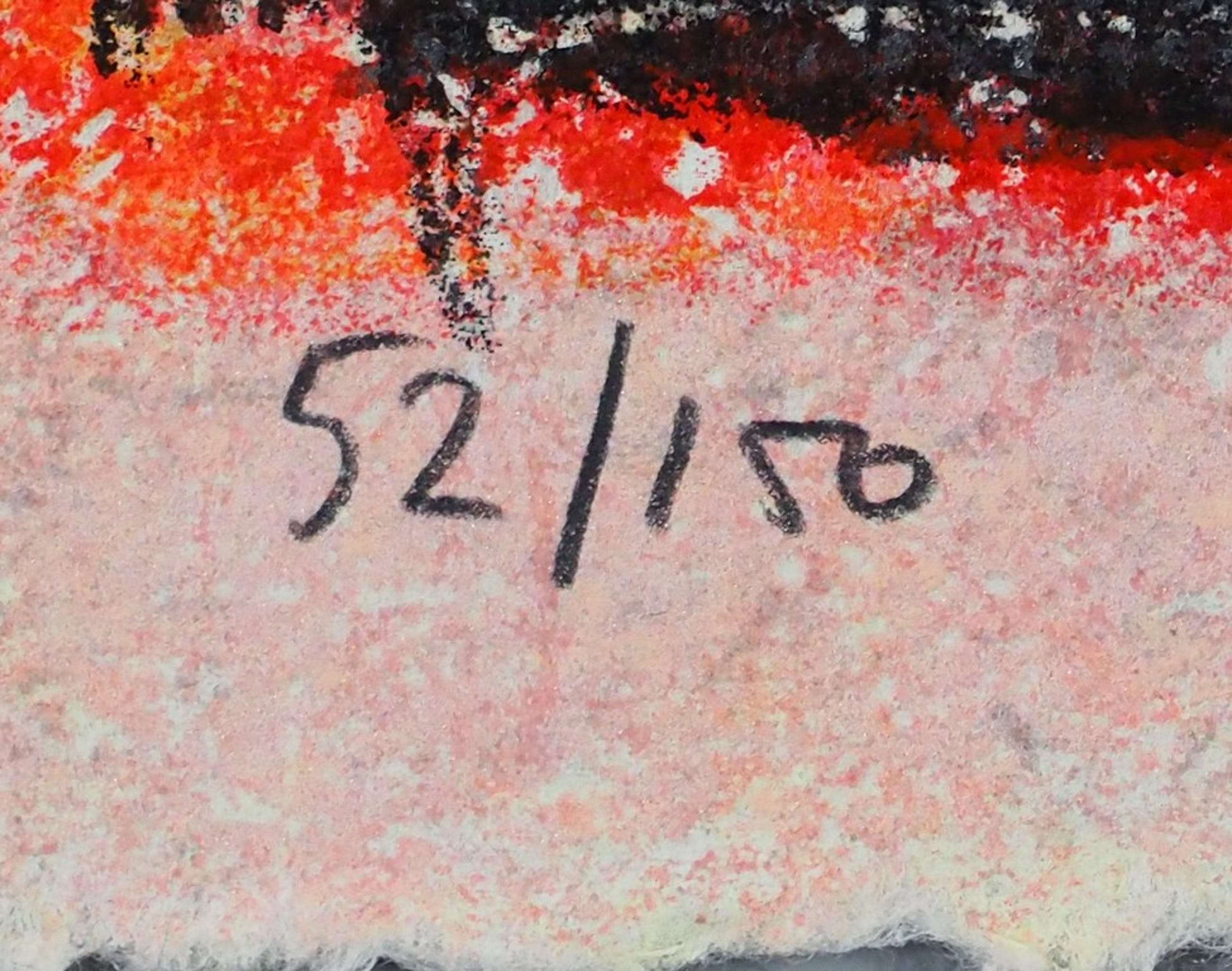 Losse zeefdruk op handgeschept papier uit 1998. Oplage 52/150. Afmeting 60x25.