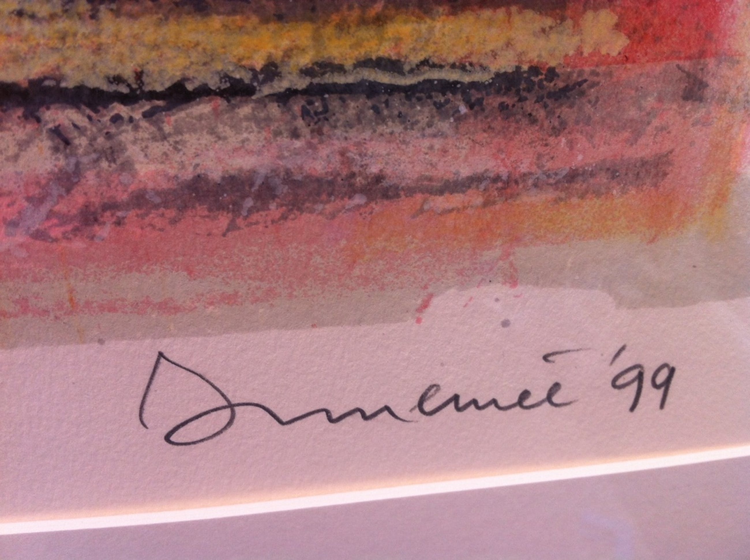 Zeefdruk met passe partout lijst en museumglas, 76 x 110 cm.