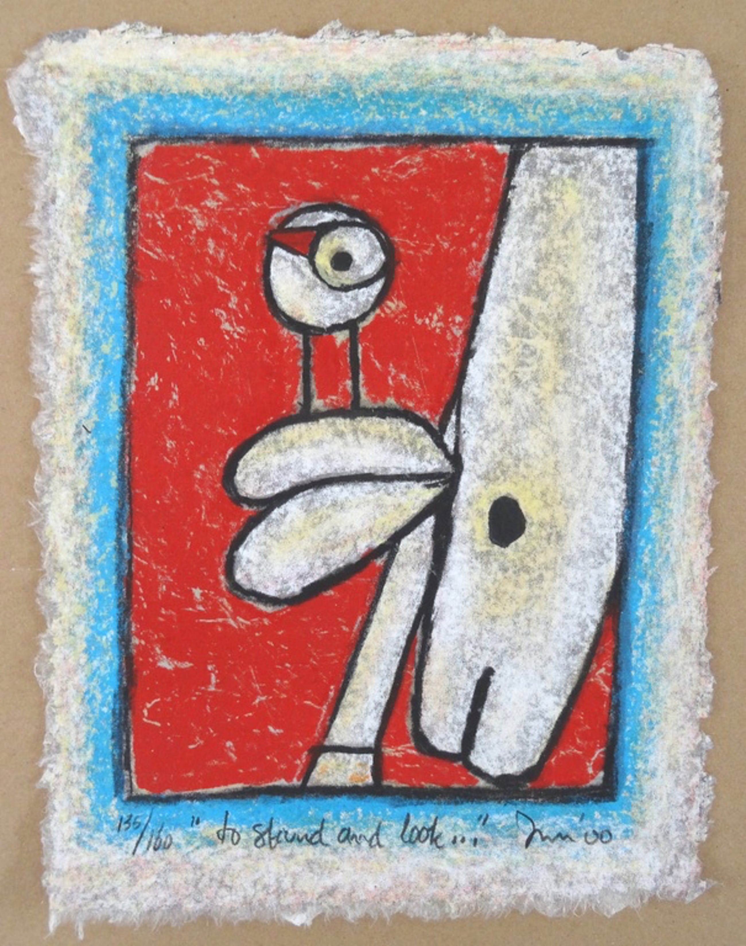 Zeefdruk ''to stand and look'' uit 2000 van Hans Innemee (Heerlen, 1951)