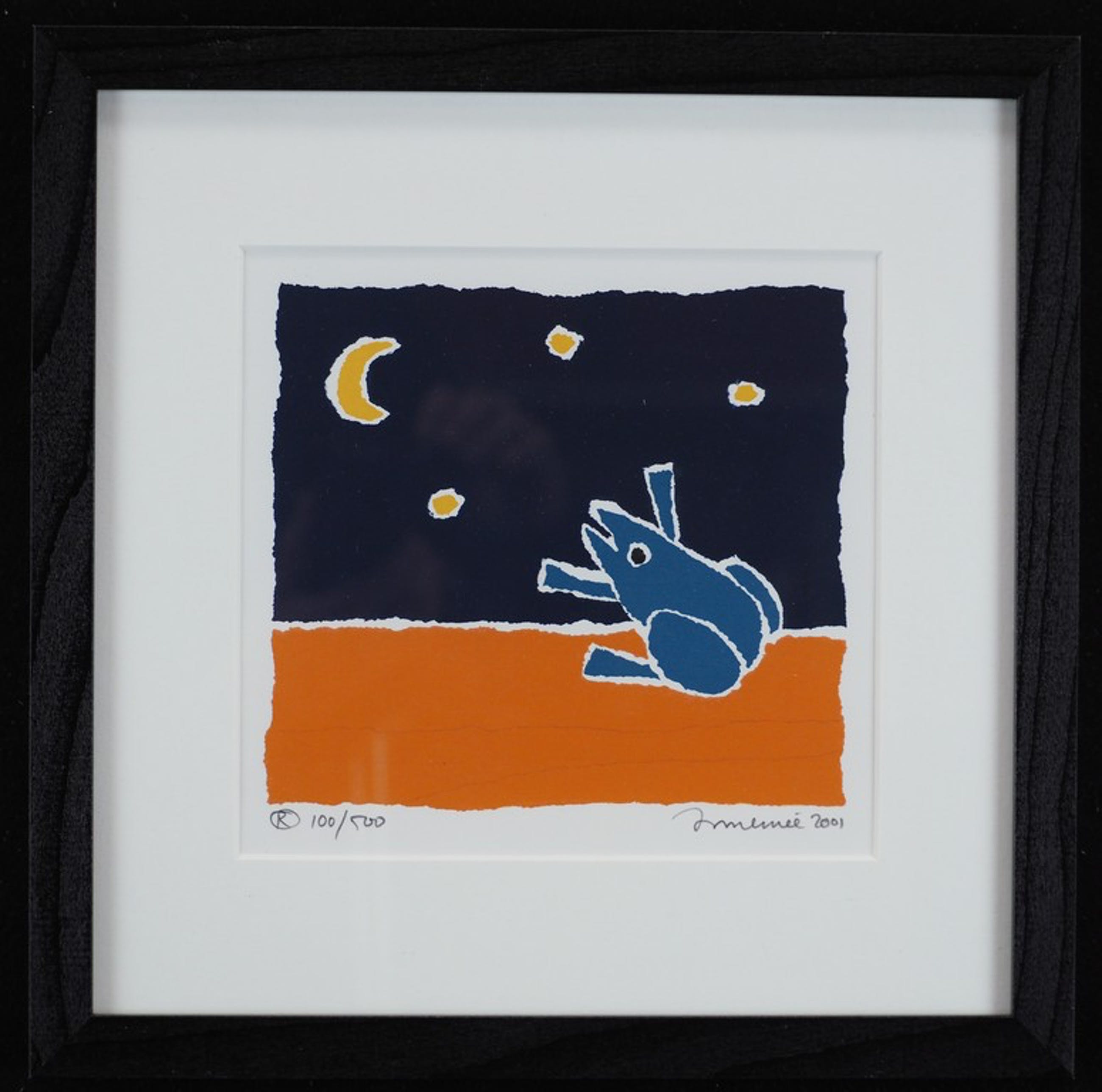 Ingelijste zeefdruk van 2001, oplage 100/500. Afmeting 33x33.