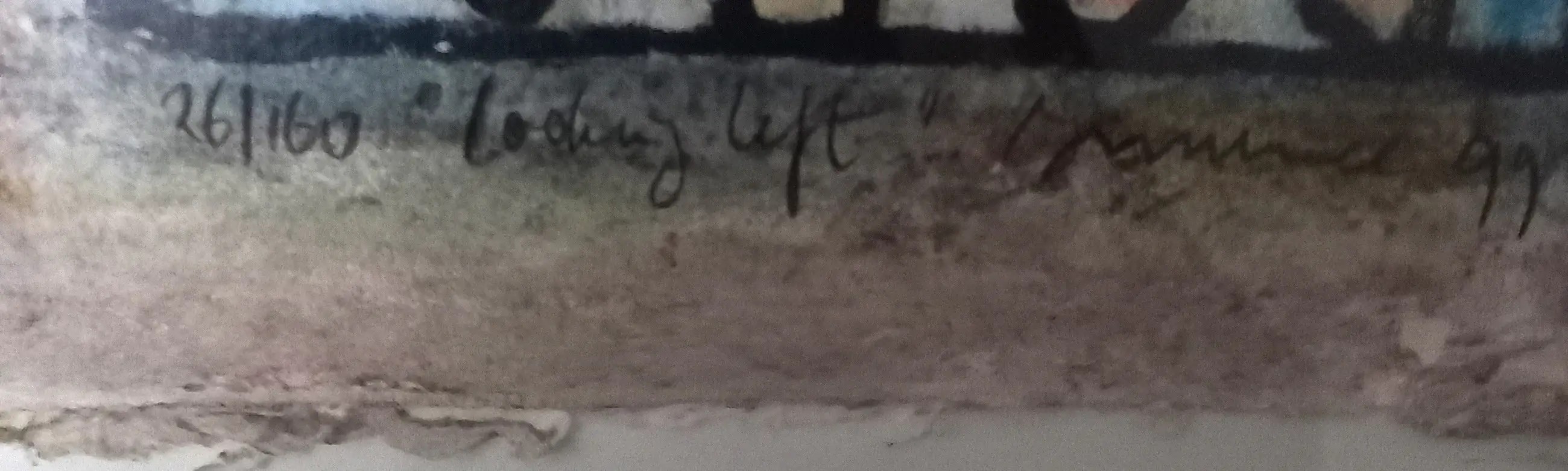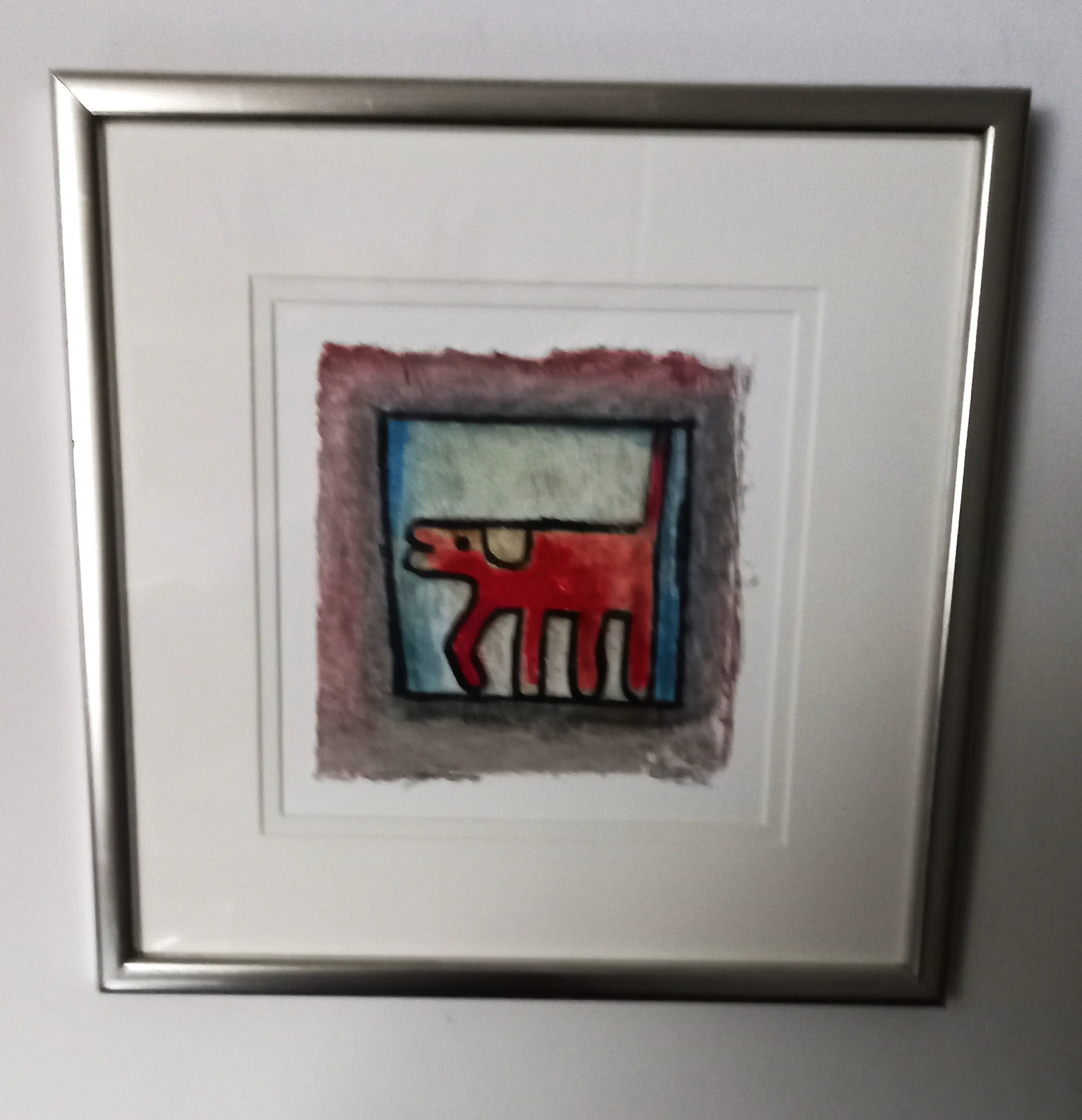 Vrolijk werk van Hans Innemeé 'Looking left'. op geschept papier. Voorzien van mooie lijst en dubbele passepartout.