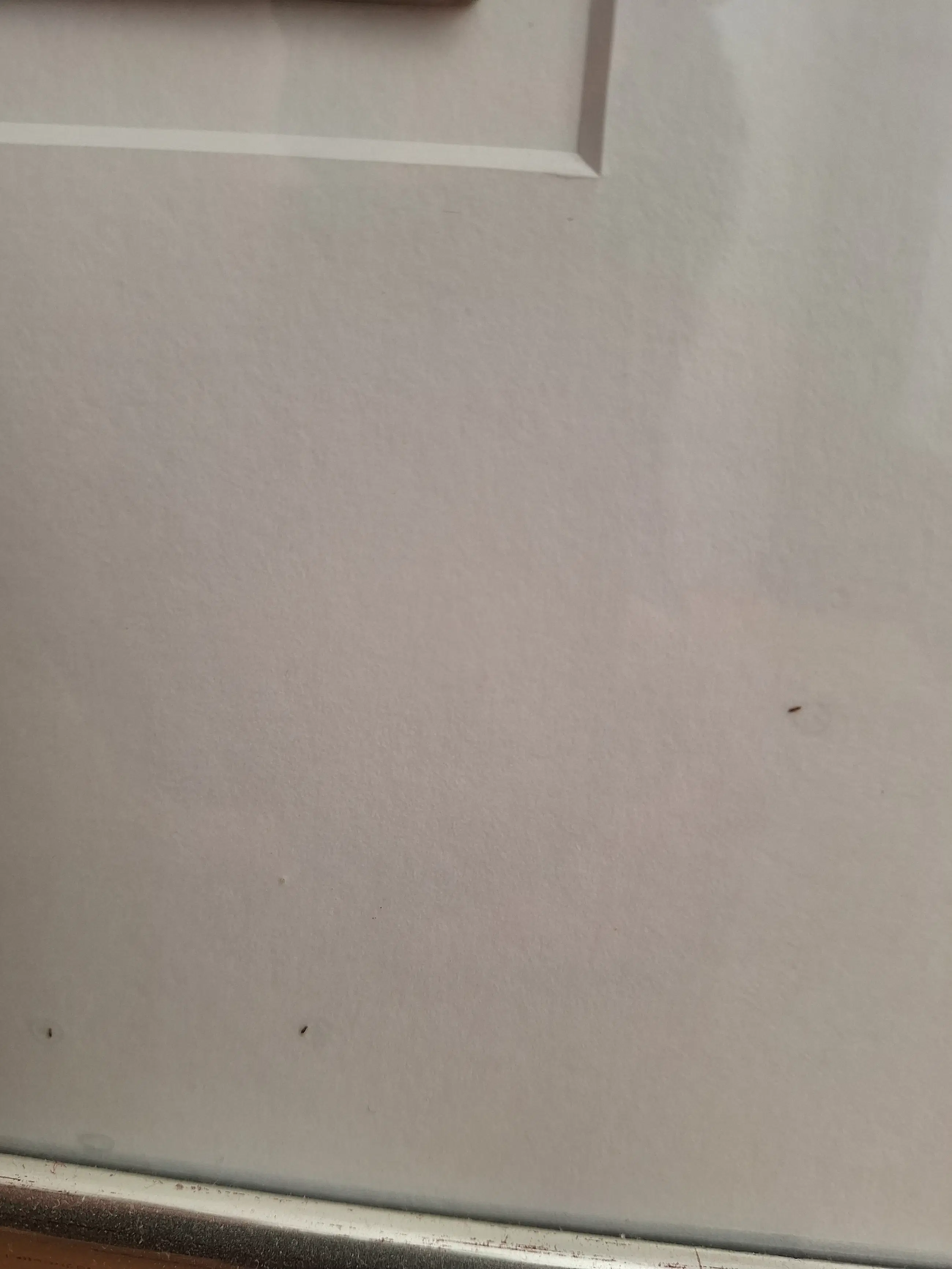 Onderzijde passepartout een enkel nauwelijks zichtbaar spikkeltje/insectje.