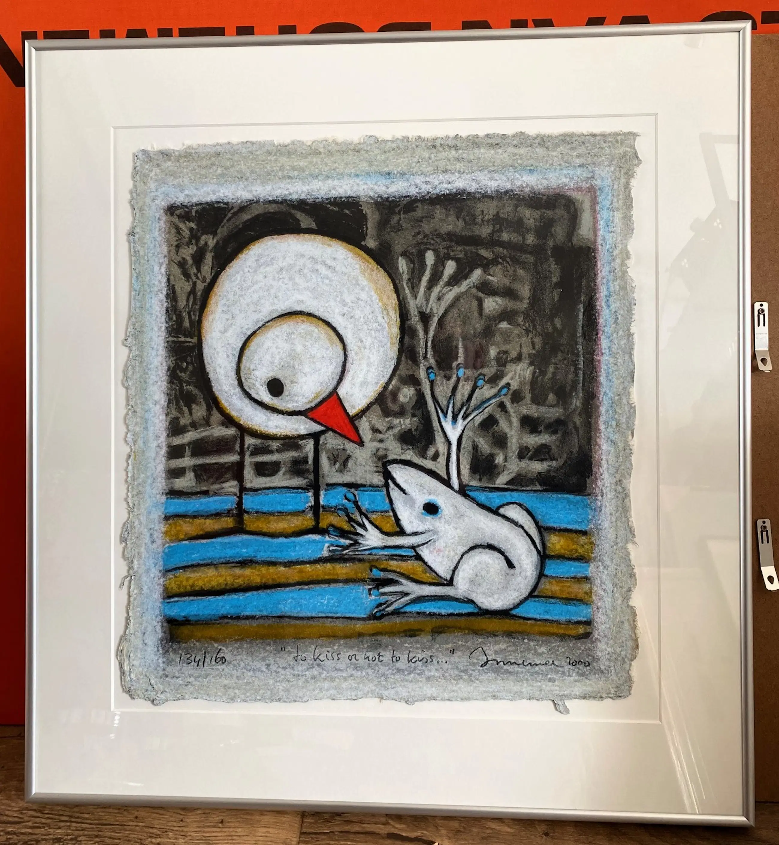 Vertederend uitgevoerde zeefdruk van Hans Innemee, fraai conserverend ingelijst met een aluminium geborstelde lijst, ophangklaar.