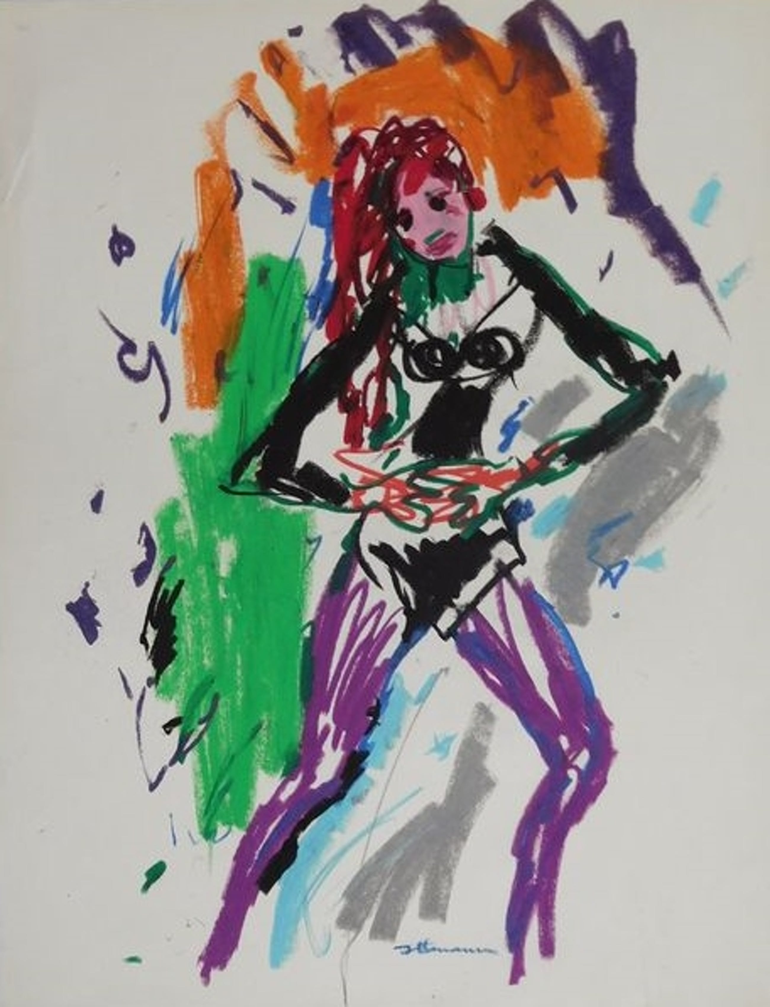 *Fraaie gesigneerde kleurrijke tekening van de kunstenaar Hans Ittmann.