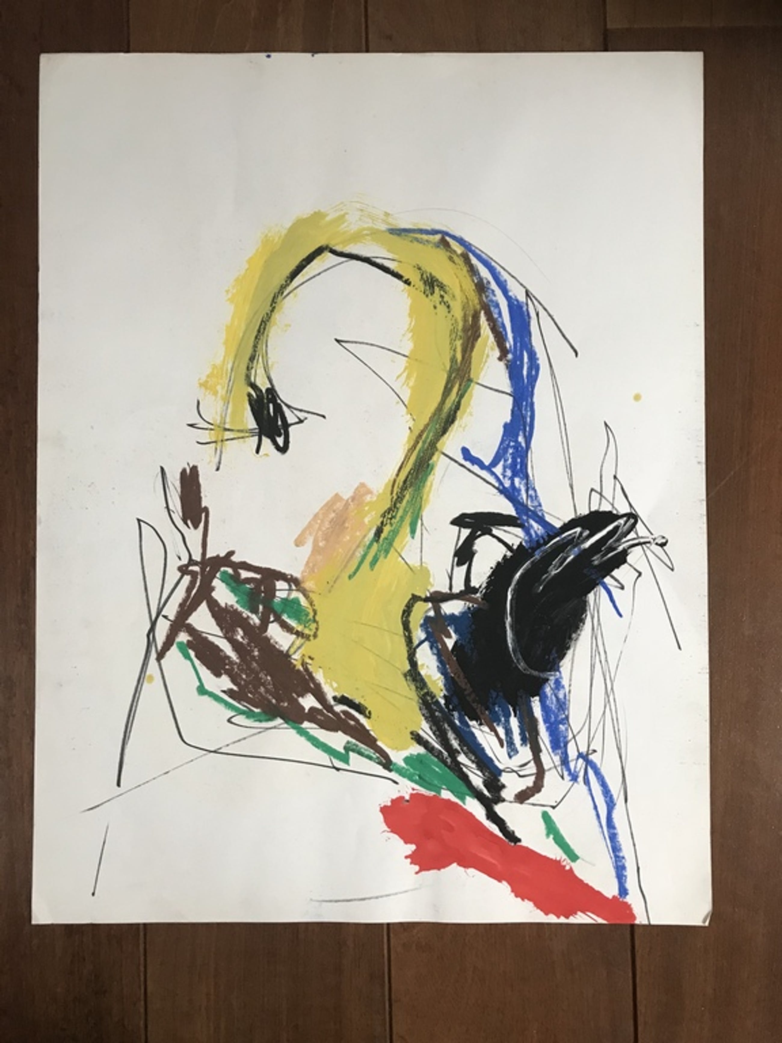 Expressionistisch kuntwerk in oliekrijt en gouache stempels aan de achterzijde van het werk .niet ingelijst in zeer goede staat op dik papier . Het formaat is : 65 cm bij 50 cm.