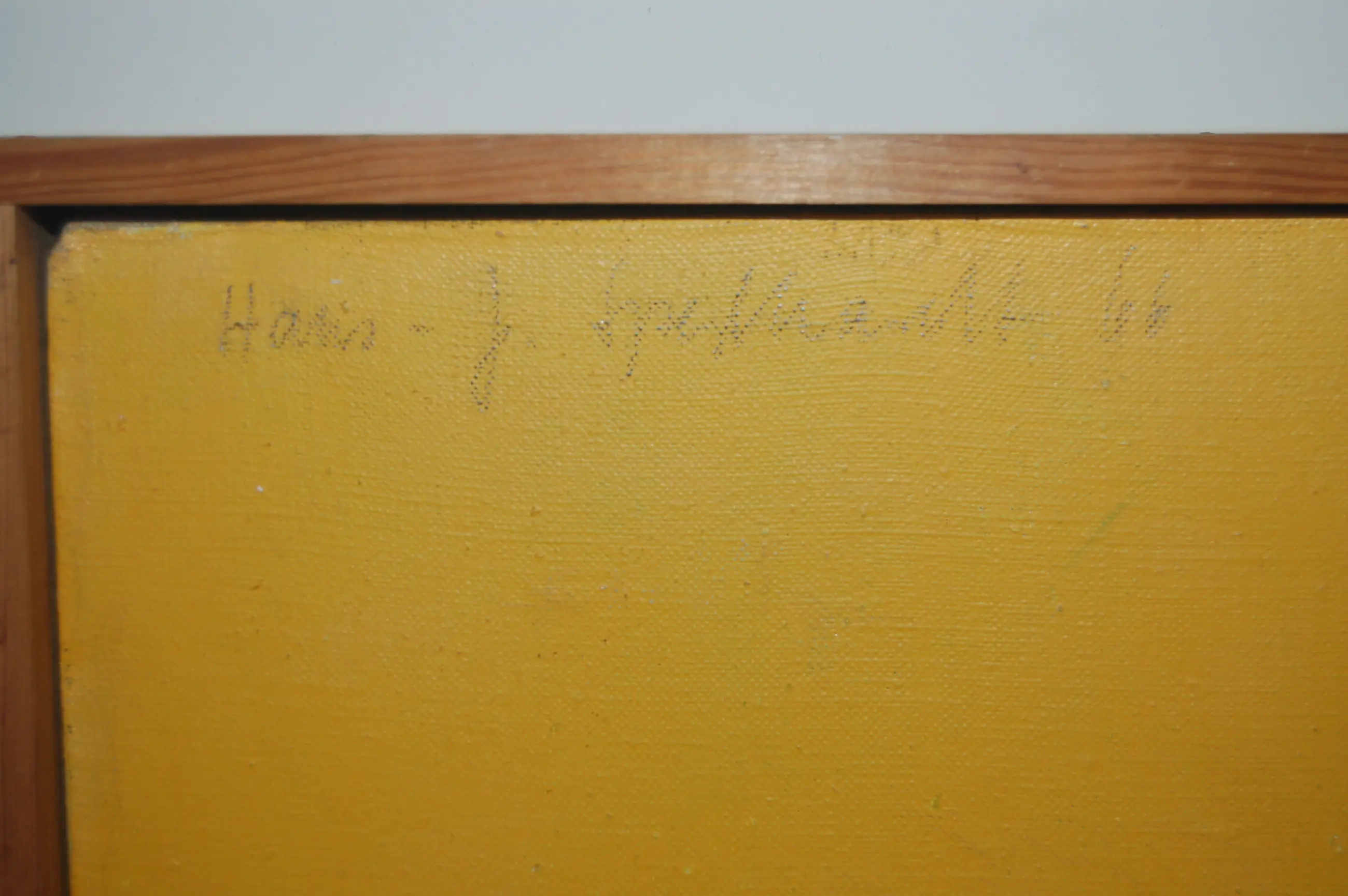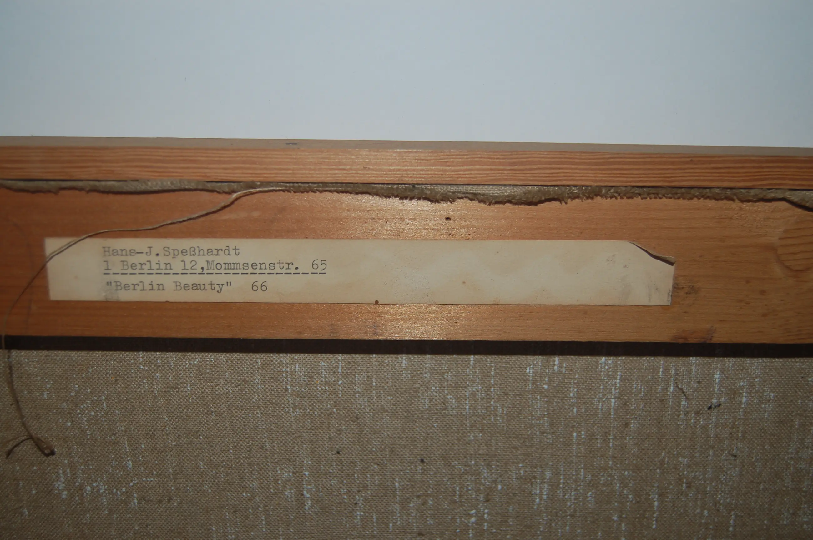 Een zeer kleurrijk schilderij van Hans-Joachim Speßardt. Het maakte meer dan 40 jaar deel uit van een privécollectie. De verzamelaars worden na de veiling uiteraard aan de koper bekendgemaakt. Het schilderij verkeert in zeer goede staat. Er zijn geen zichtbare beschadigingen. De houten lijst is een eenvoudige grenen lijst, gemaakt door de kunstenaar zelf.