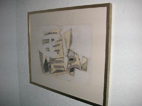 Es handelt sich um eine frühe und qualitätsvolle Arbeit, die sichtbar den Bauhauseinfluss widerspiegelt. Maße ca. 42,7 x 55,5 cm, geringfügige Altersspuren, aber im Ganzen sehr gute Erhaltung, sehr schöne Rahmung.