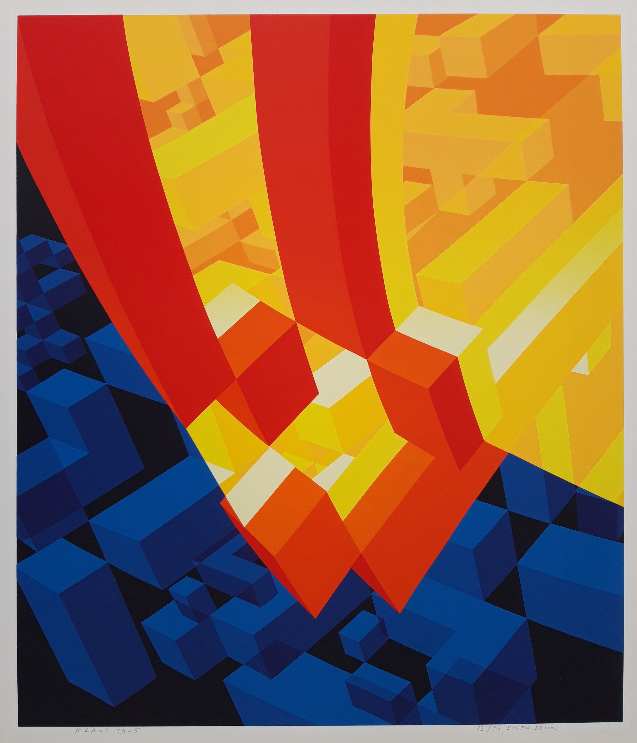 Hans Klaui (1945) is bij de Haagse Kunstkring betrokken en werkt in een abstract geometrische stijl. Herkenbaar aan Klaui's werk is de kubusachtige opbouw van de voorstelling. In een schijnbaar oneindige ruimte zweven in groepen aan elkaar geklonken blokken, door kleur bij elkaar gehouden. De blokken verdwijnen uiteindelijk om plaats te maken voor nieuwe vormen. De beweging wordt geleidelijk voortgestuwd door een onzichtbare aantrekkingskracht, voelbaar aanwezig in dit meetkundig heelal. Dit wordt versterkt door het kleurgebruik met veel koele blauwen.