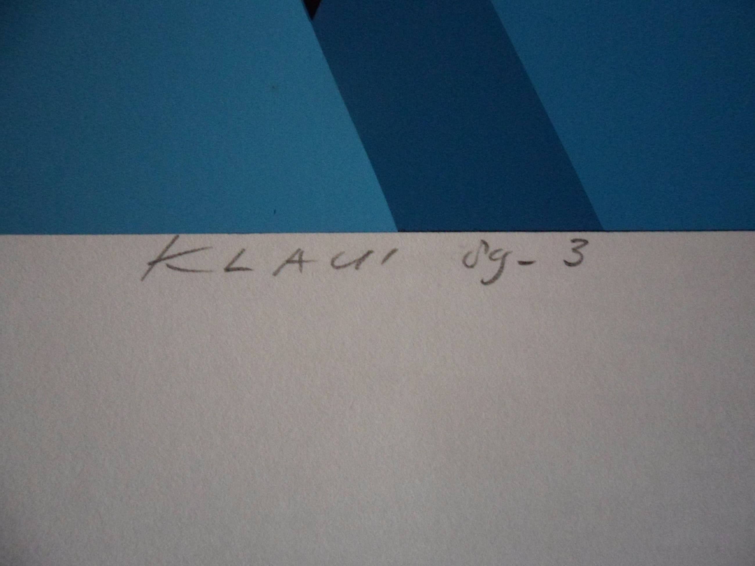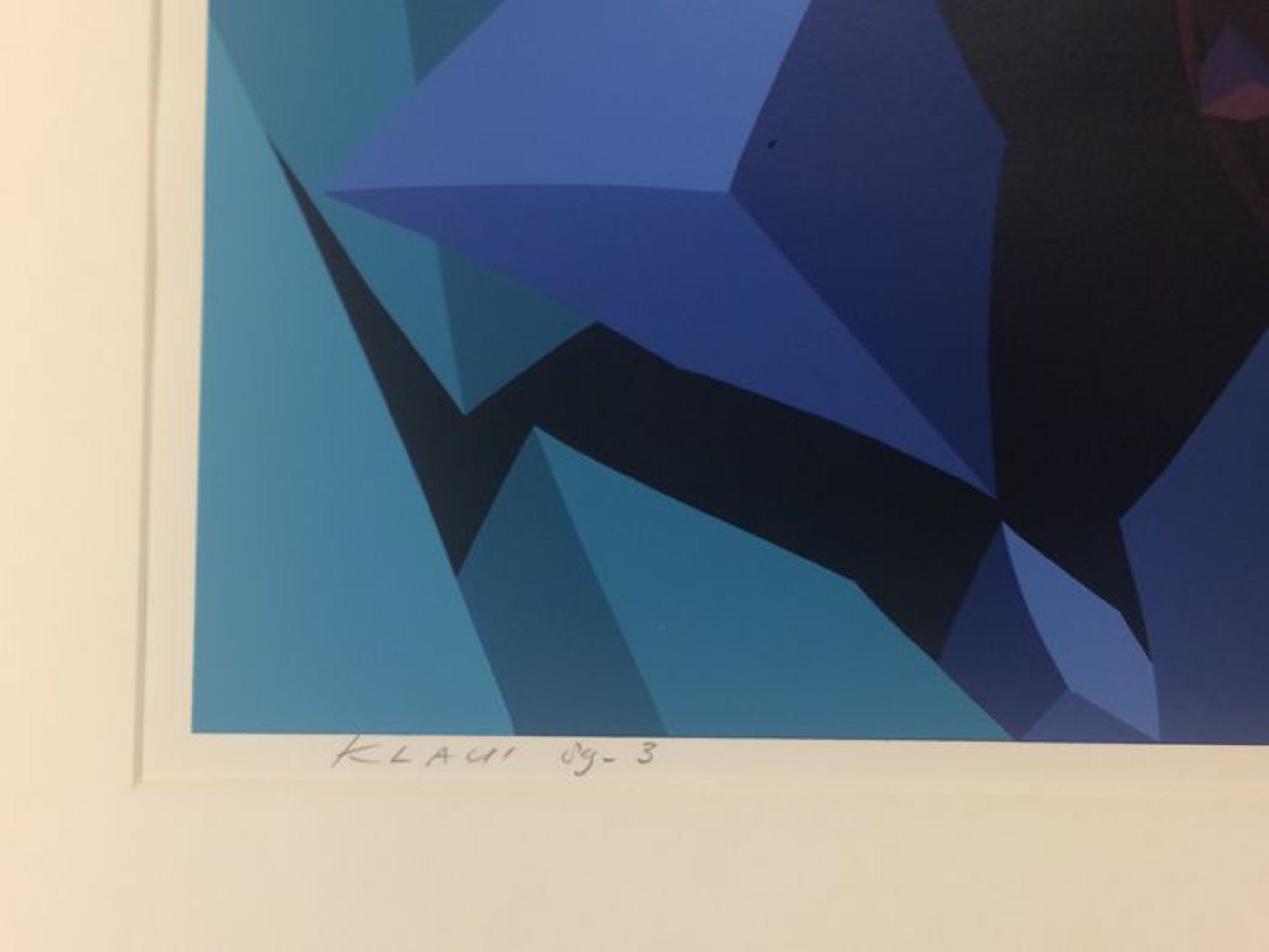 De zeefdrukken en schilderijen van Klaui kenmerken zich door hun abstract geometrische stijl. De werken illustreren oneindige ruimtes met daarin zwevende geometrische vormen, voornamelijk kubussen. Deze kubussen met vaak gebogen contouren zweven in groepen door de ruimte en lijken te worden aangedreven door een onzichtbare kracht.