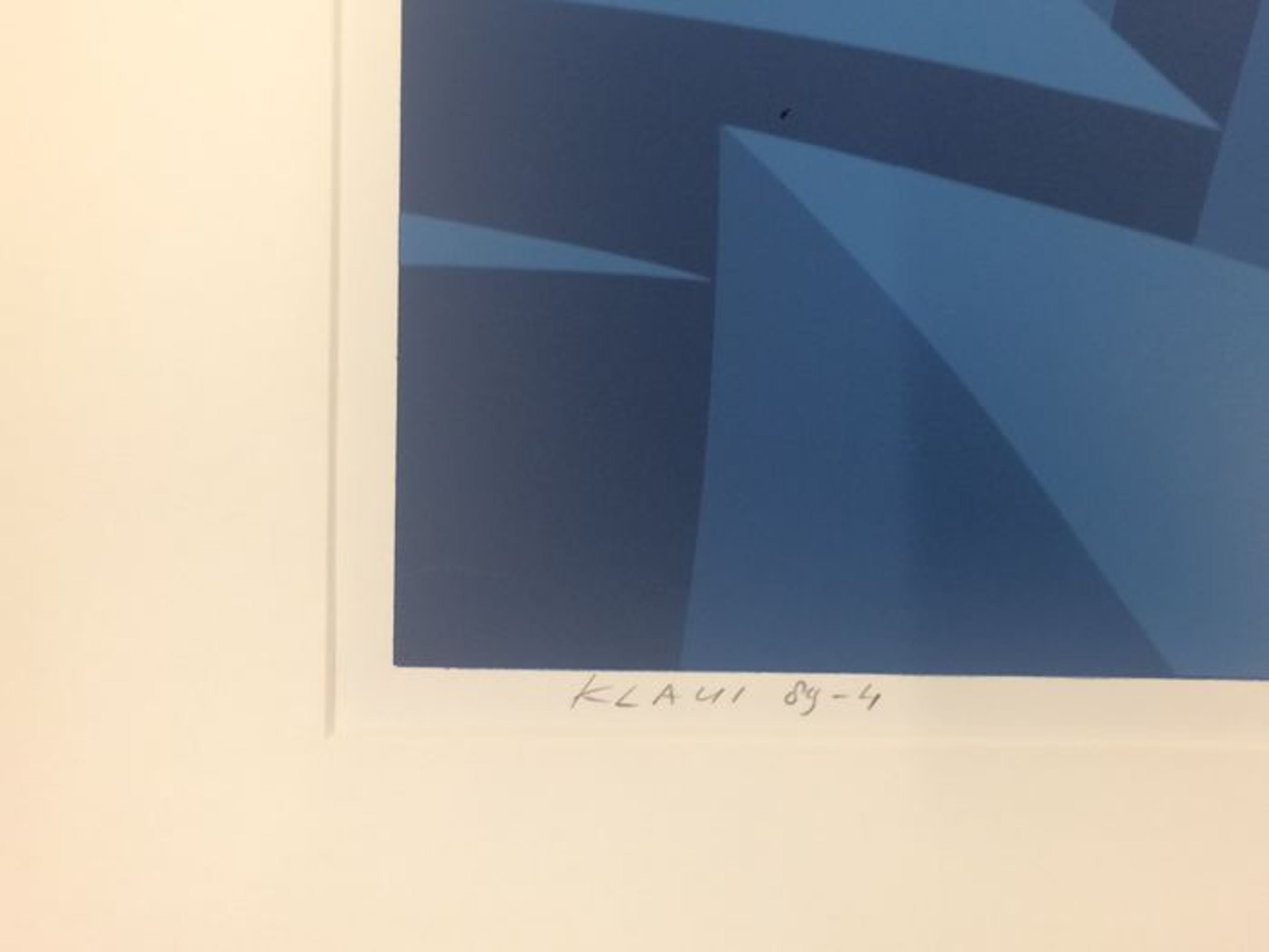 De zeefdrukken en schilderijen van Klaui kenmerken zich door hun abstract geometrische stijl. De werken illustreren oneindige ruimtes met daarin zwevende geometrische vormen, voornamelijk kubussen. Deze kubussen met vaak gebogen contouren zweven in groepen door de ruimte en lijken te worden aangedreven door een onzichtbare kracht.