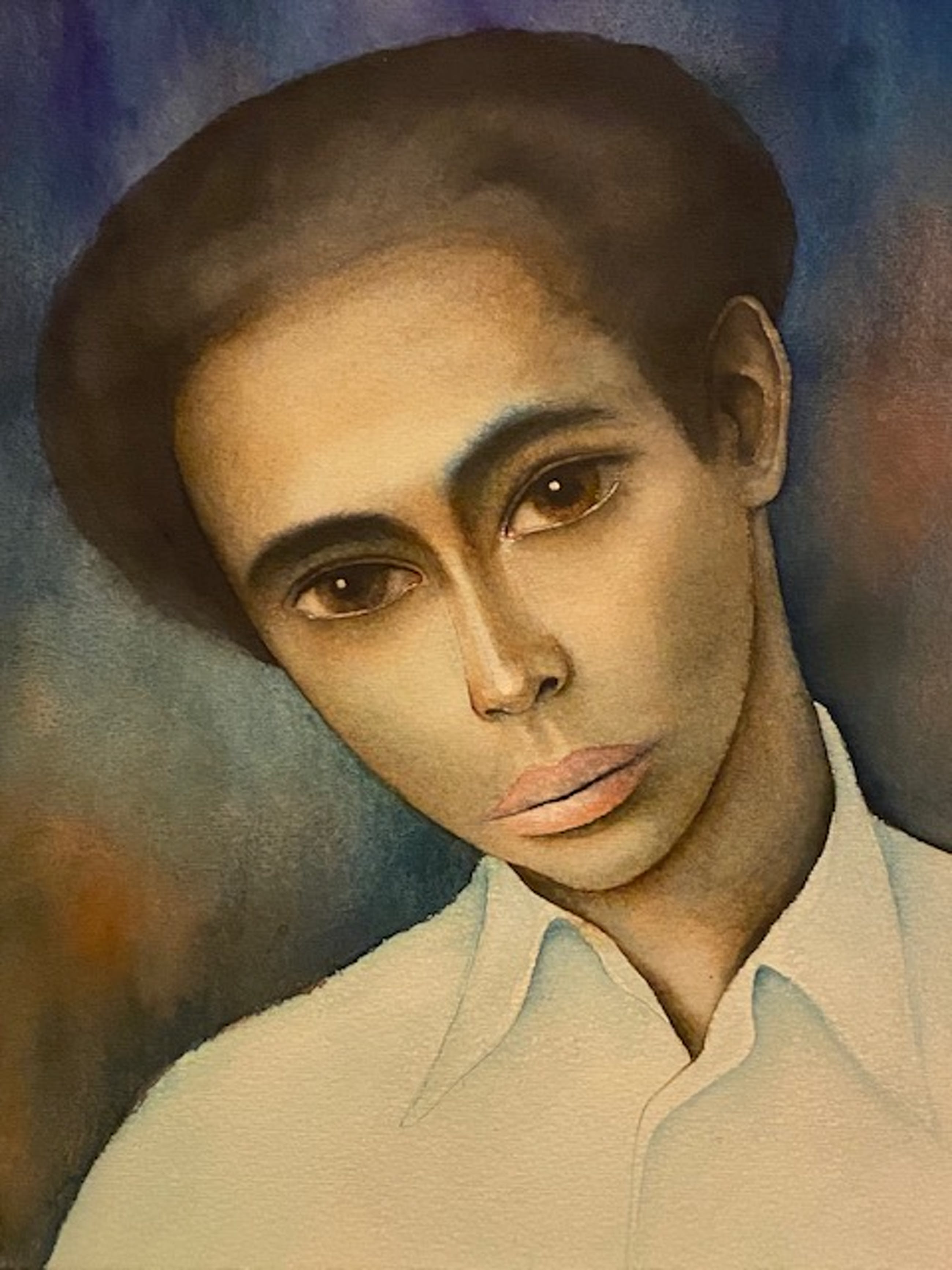 Romantisch portret van jongeman in harmonische kleuren. Op de achterkant een naakte jongeman.