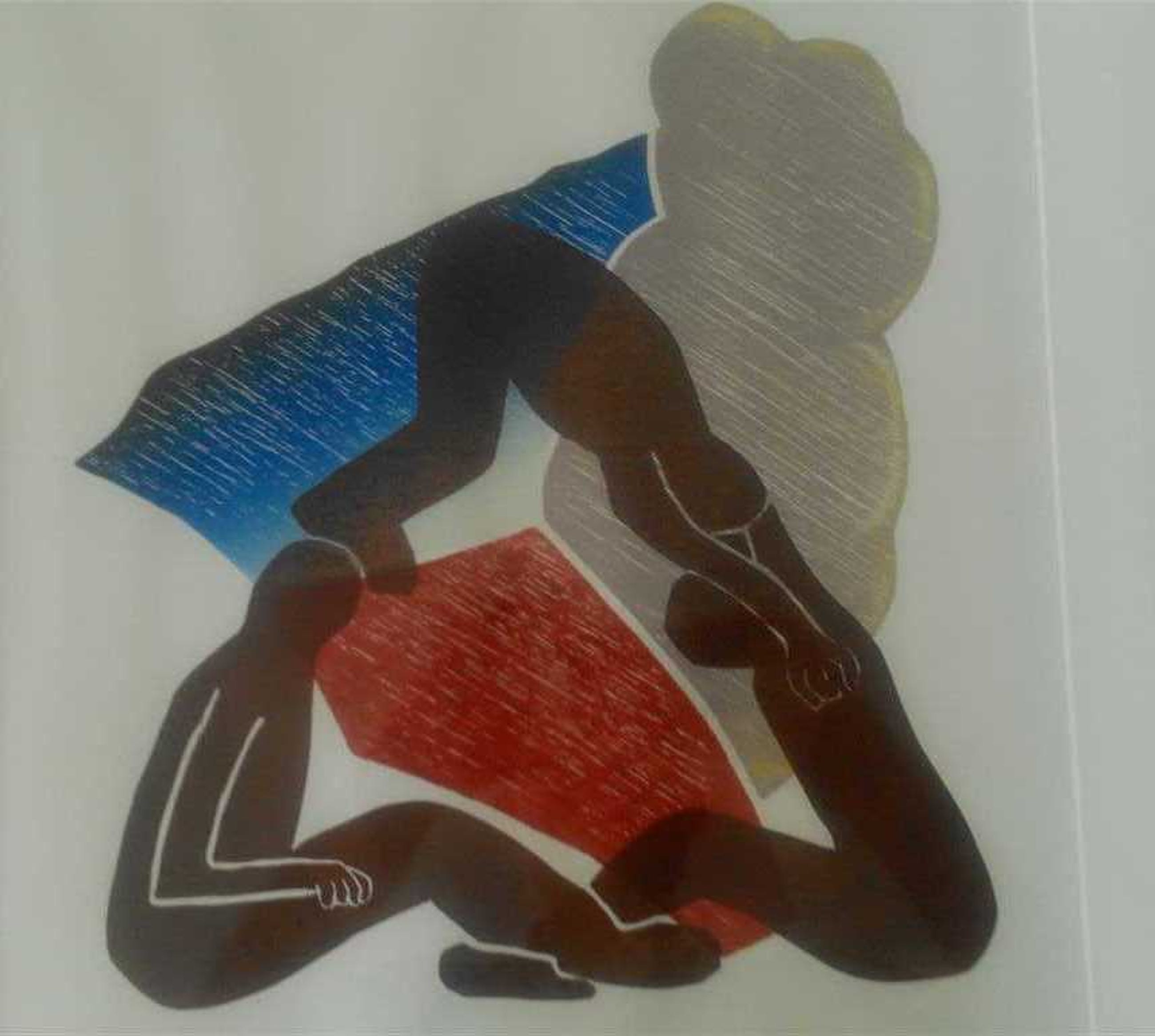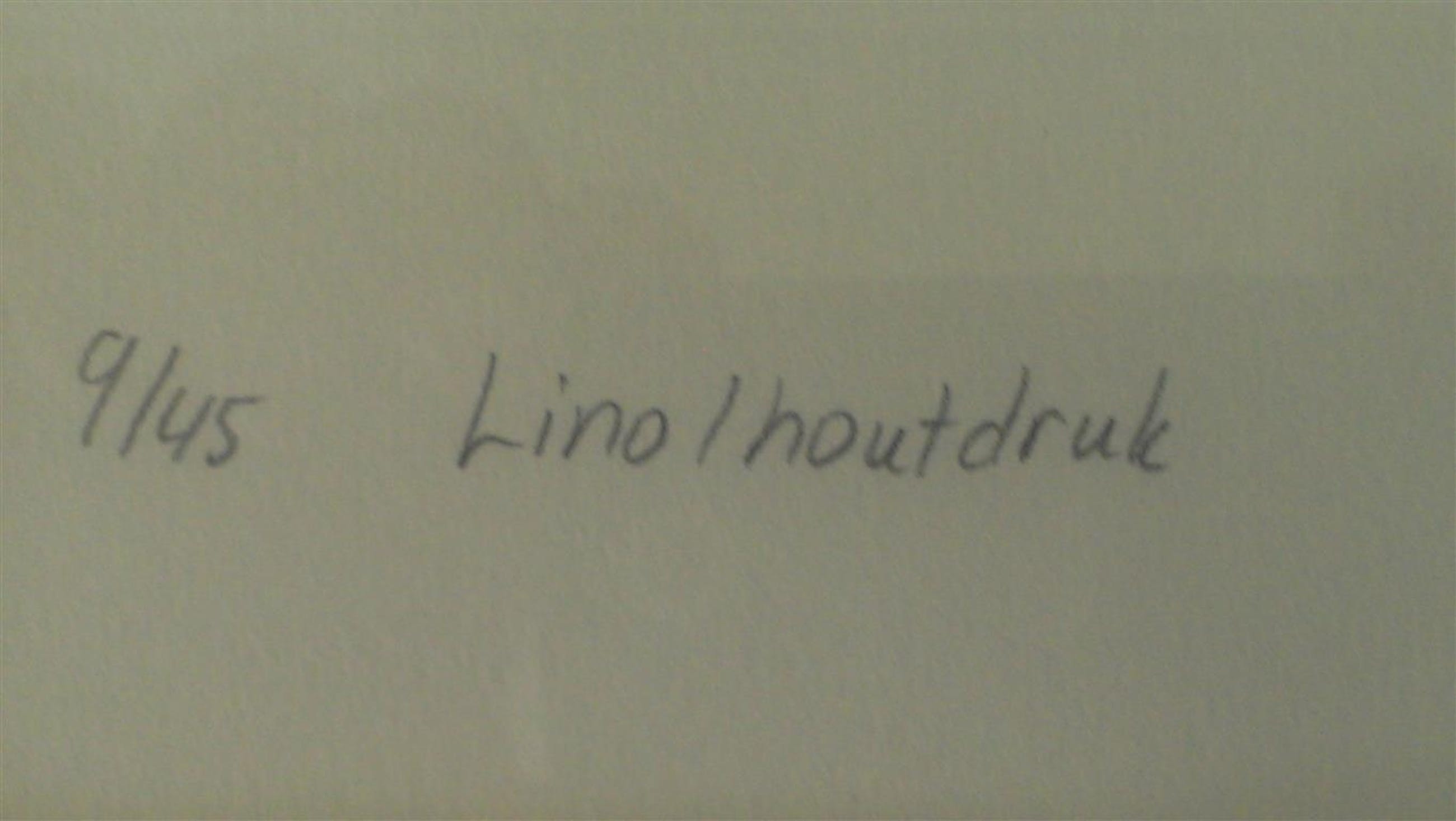 Hans Kuyper en Ineke Massaar maakten deze Lino/houtdruk gesigneerd en gedateerd nummer 9 van 45 mooi ingelijst in aluminium lijst en passe-partout