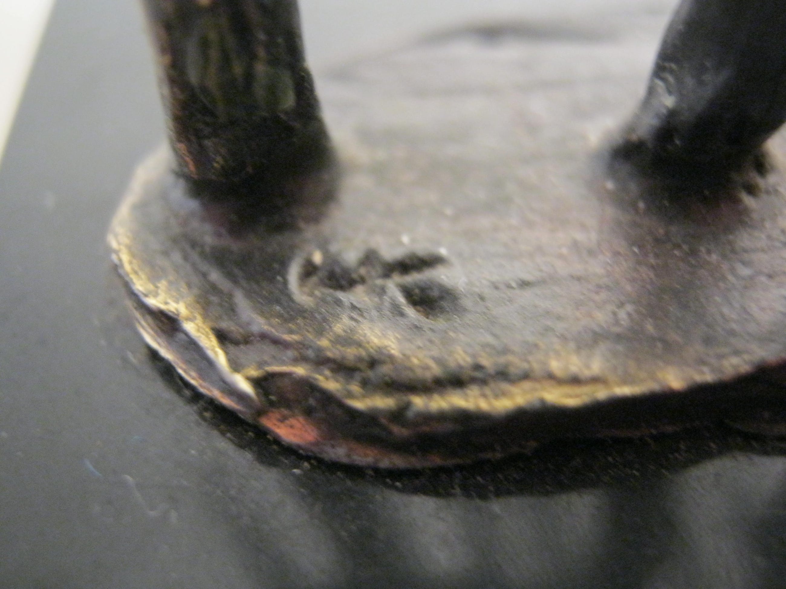 Totale hoogte is 13 cm. Het sculptuur is 13,5 cm breed en 9 cm diep. Op marmeren sokkel van 2 cm hoog en 5 x 5 cm breed.