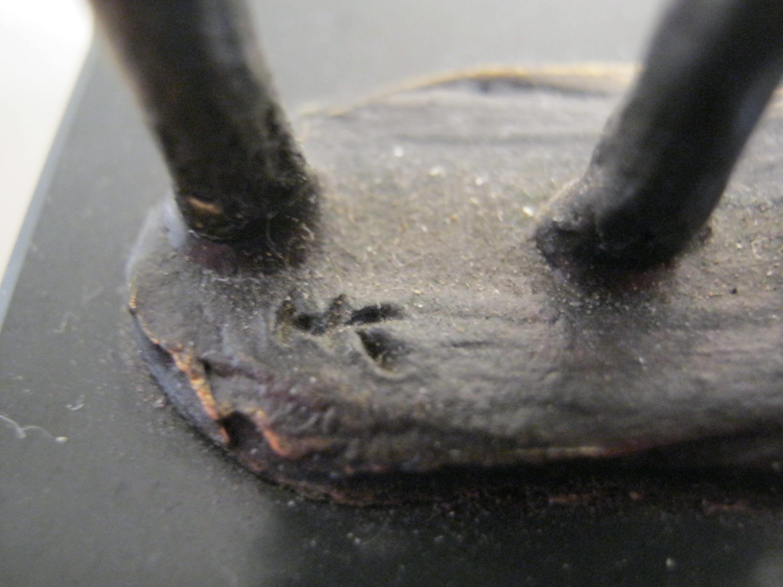 Totale hoogte is 14.5 cm. Het sculptuur is 12 cm breed en 13 cm diep. Op marmeren sokkel van 2 cm hoog en 5 x 5 cm breed.