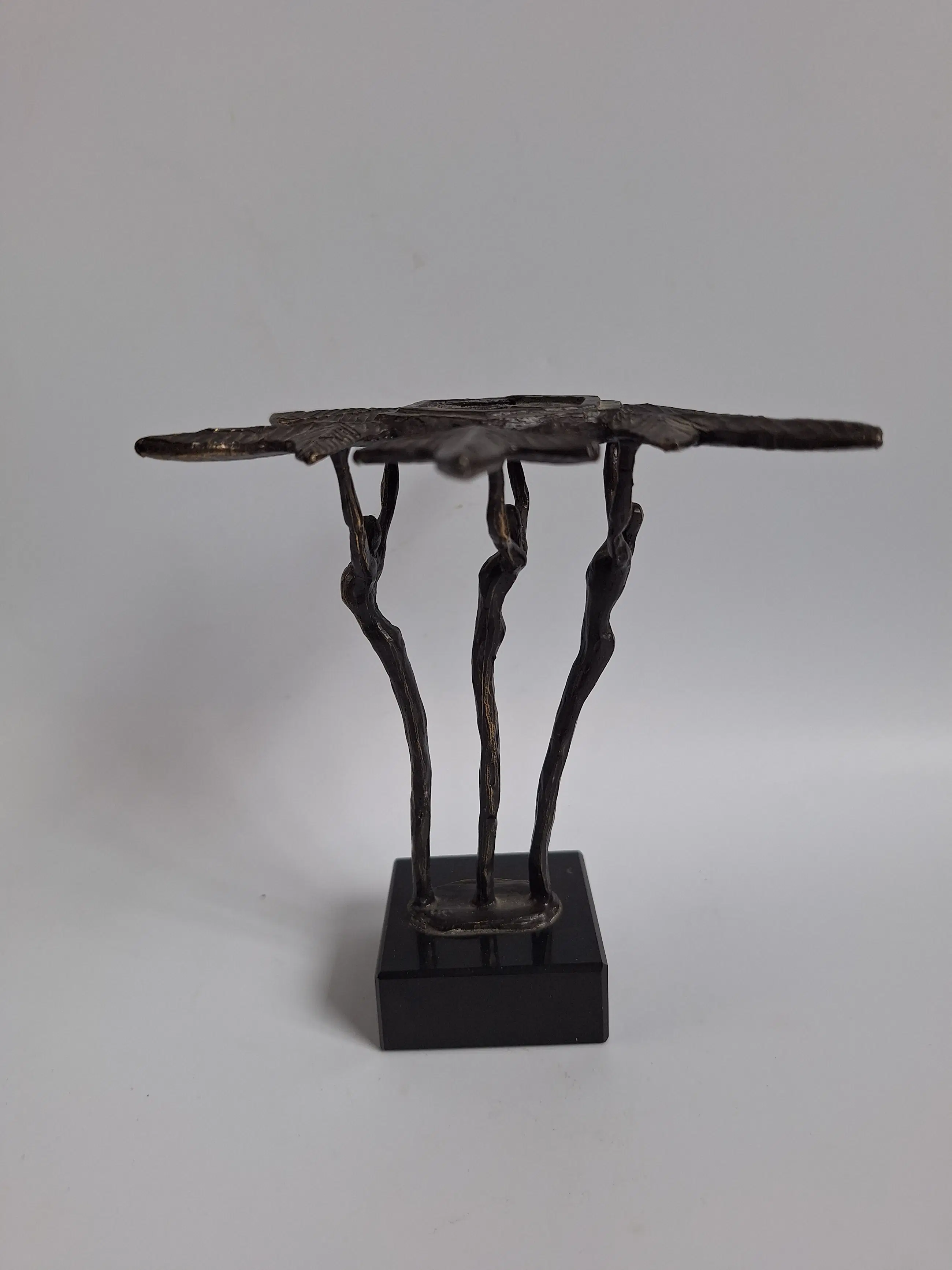 Prachtig kunstwerk van kunstenaar Hans Kuyper. Het is een beeldje van zijn serie de 4 jaargetijden. Dit beeldje betreft; winter 13,5 x 14 x 14,5 cm 370 gram