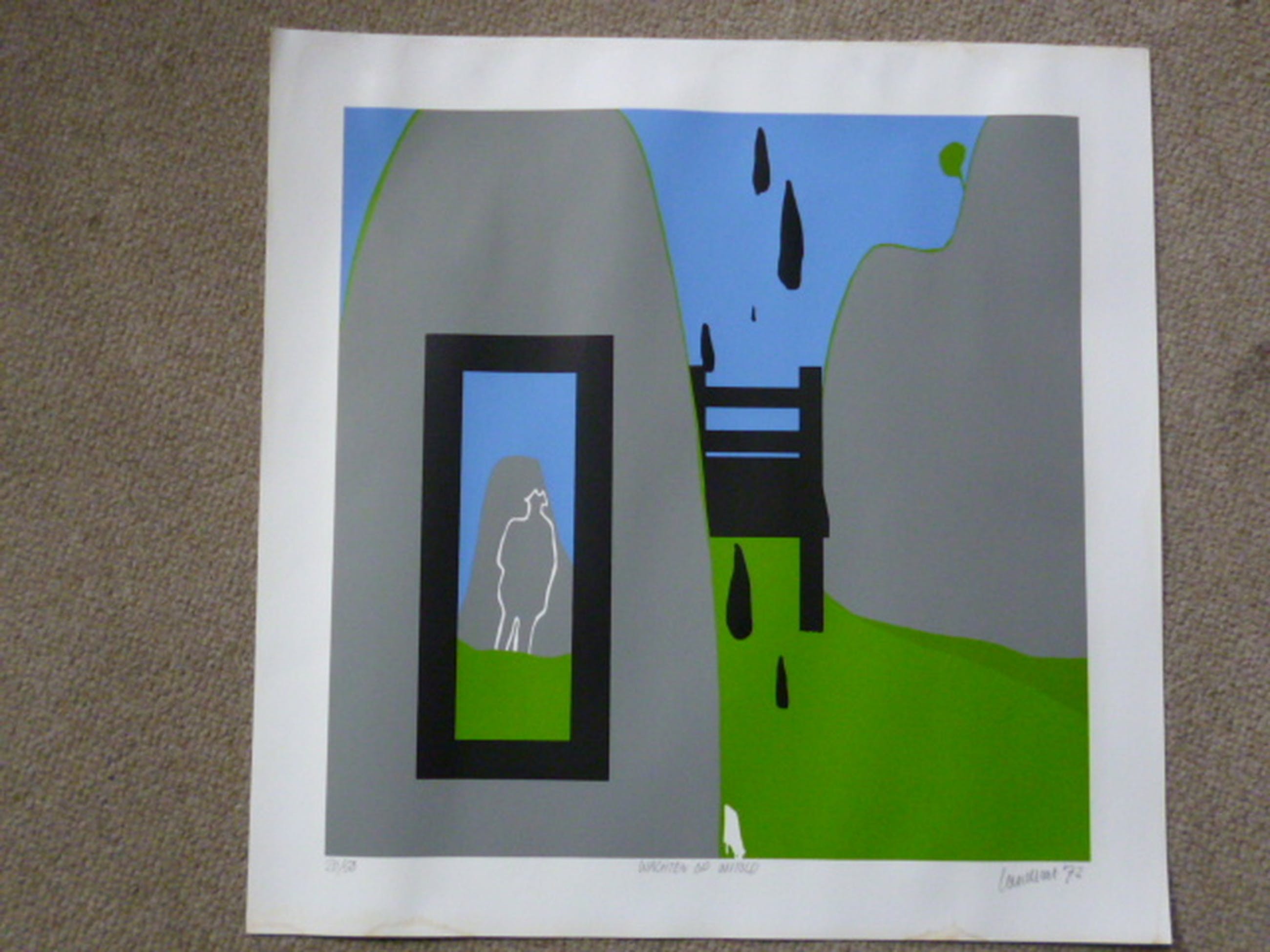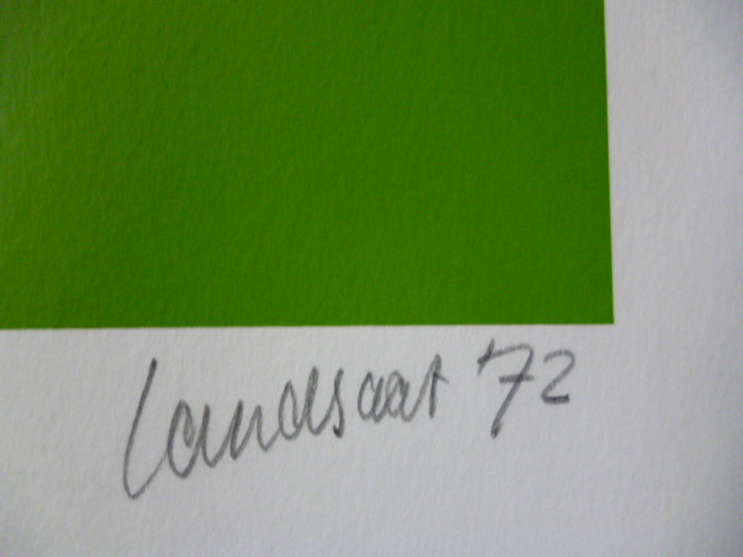 Zeefdruk, potlood gesigneerd en gedateerd '72 rechtsonder. Getiteld middenonder.