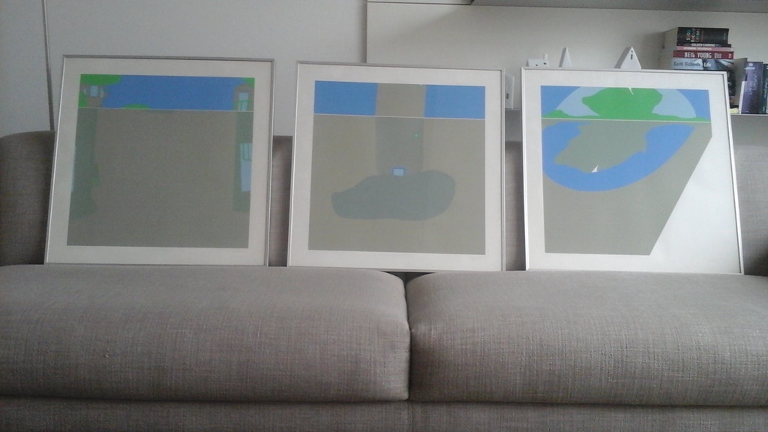 Fraaie zeefdrukken (3 stuks) uit 1977 van Hans Landsaat in goede staat, gekocht bij Galerij Asselijn Amsterdam in 1978. 50×50 cm. Ingelijst (aluminium)