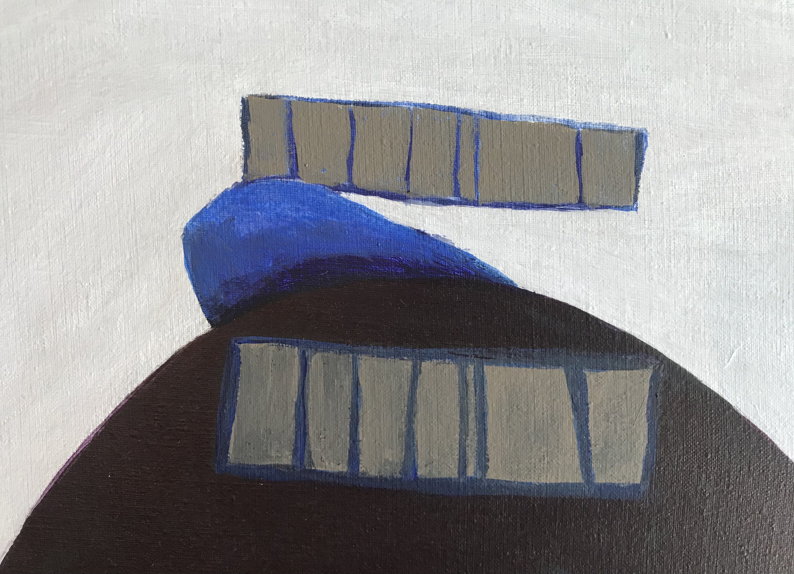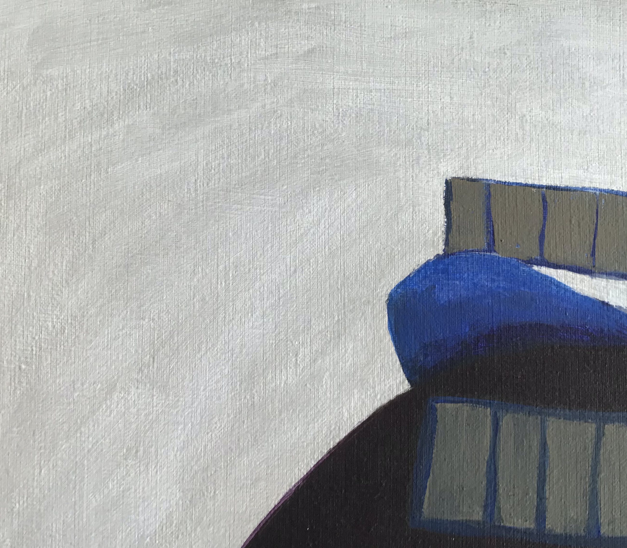 Innemend werk van Landsaat met mooie abstrahering zoals die in meer van zijn vroege werk terugkomt. Ook de kleuren (het lichte vlak heeft een zweem van blauw) roepen direct herkenning op.