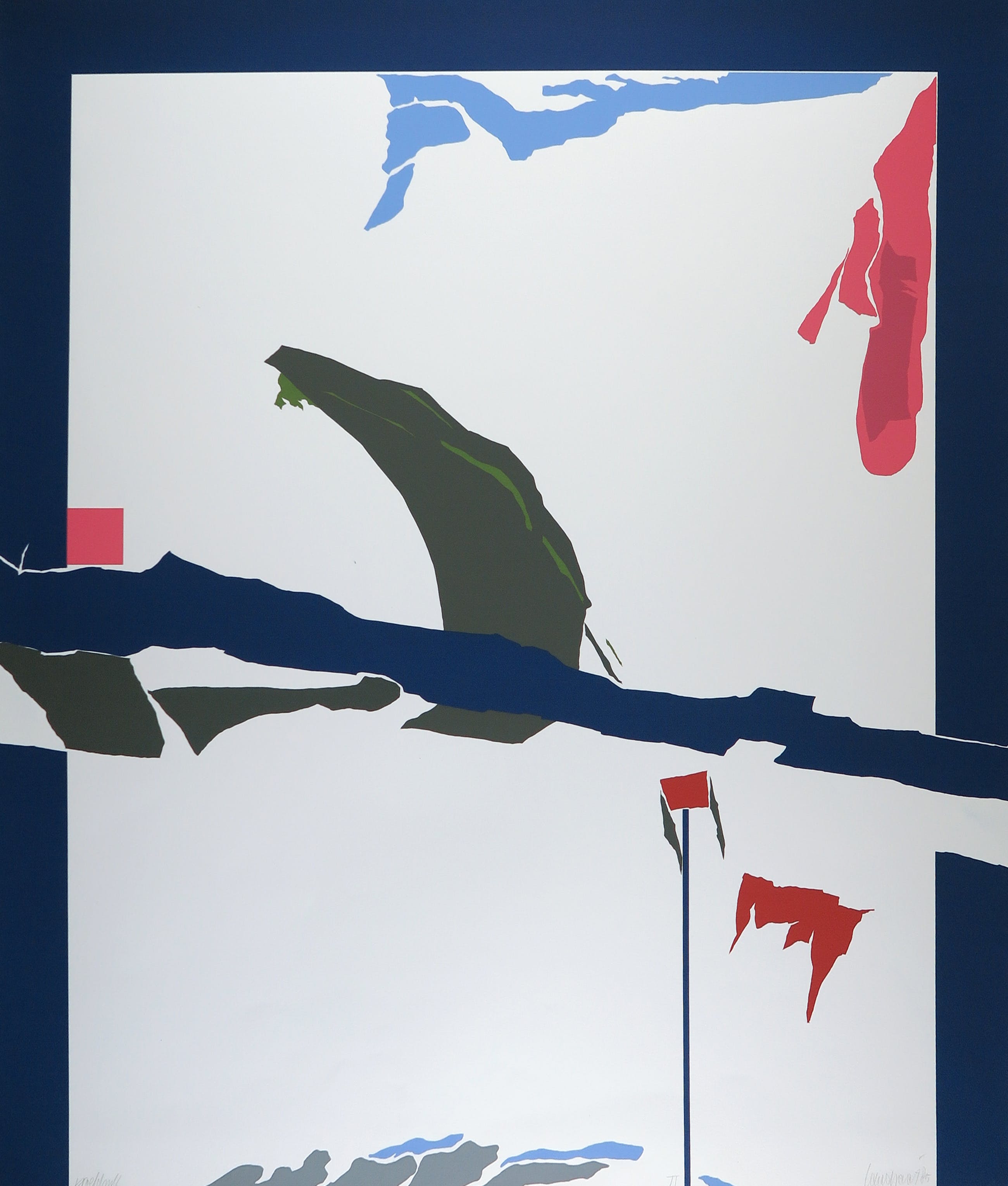Grote zeefdruk door Hans Landsaat, getiteld Winnipeg Window II.
