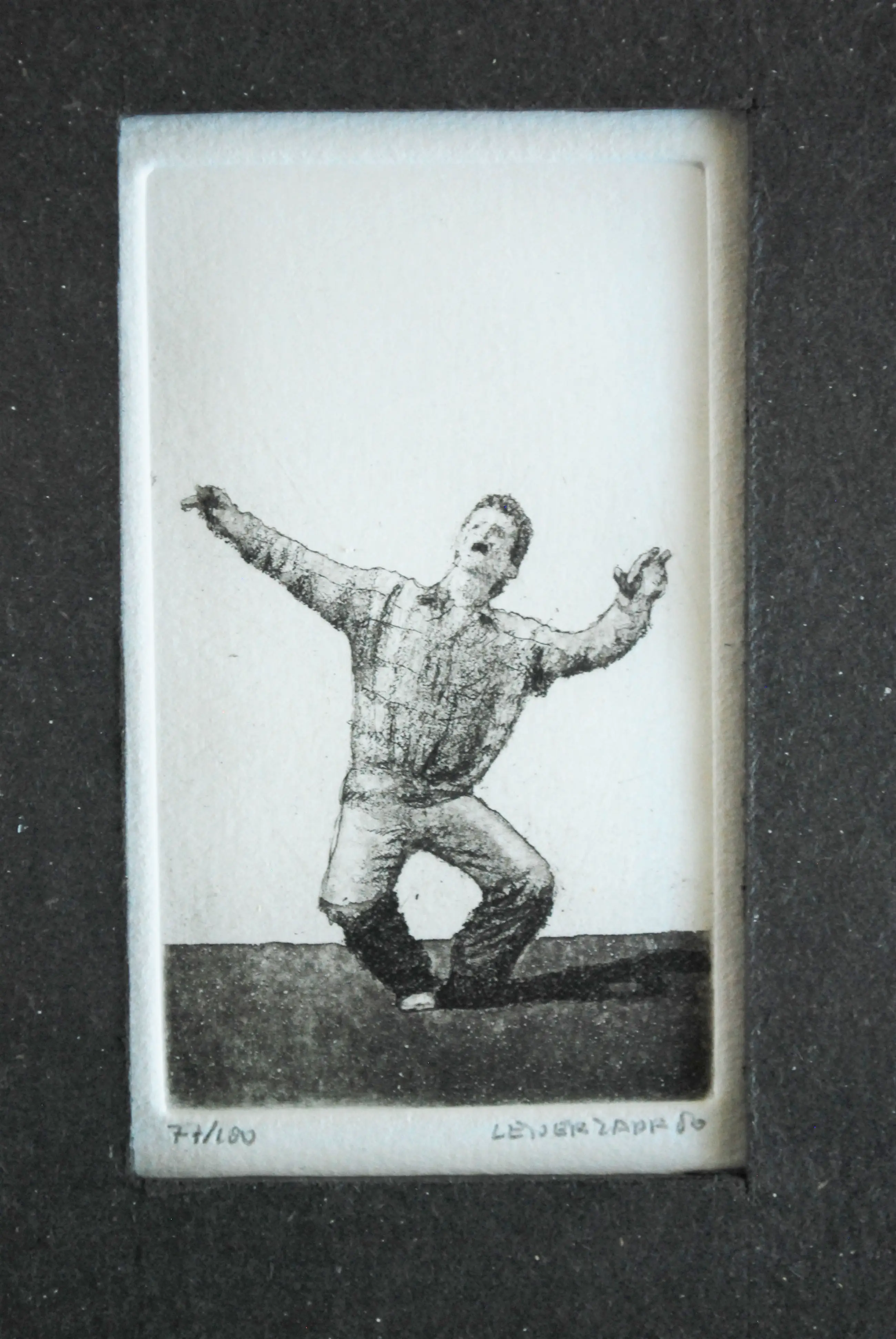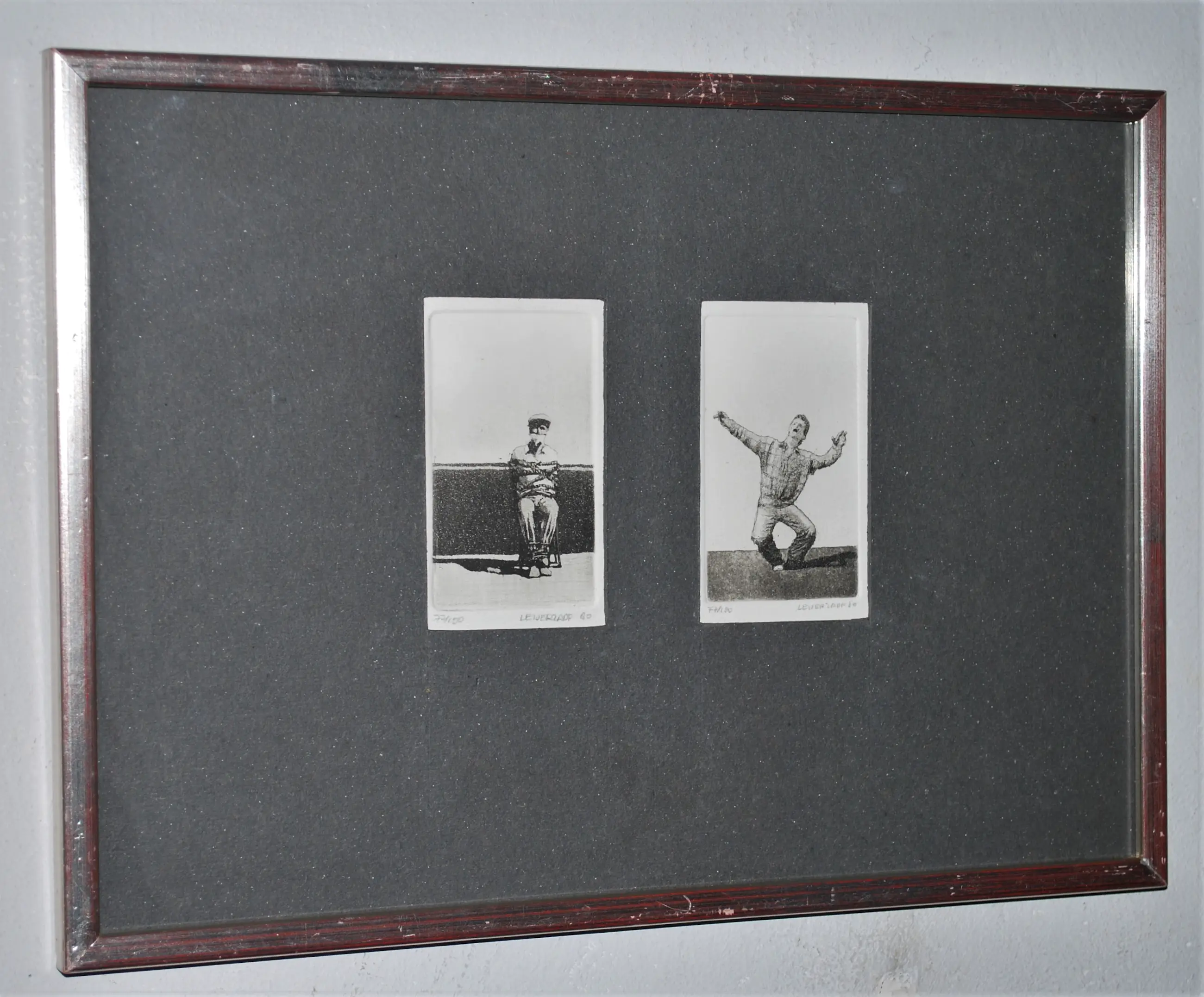 Achter glas in een houten lijst (lichte slijtschade).