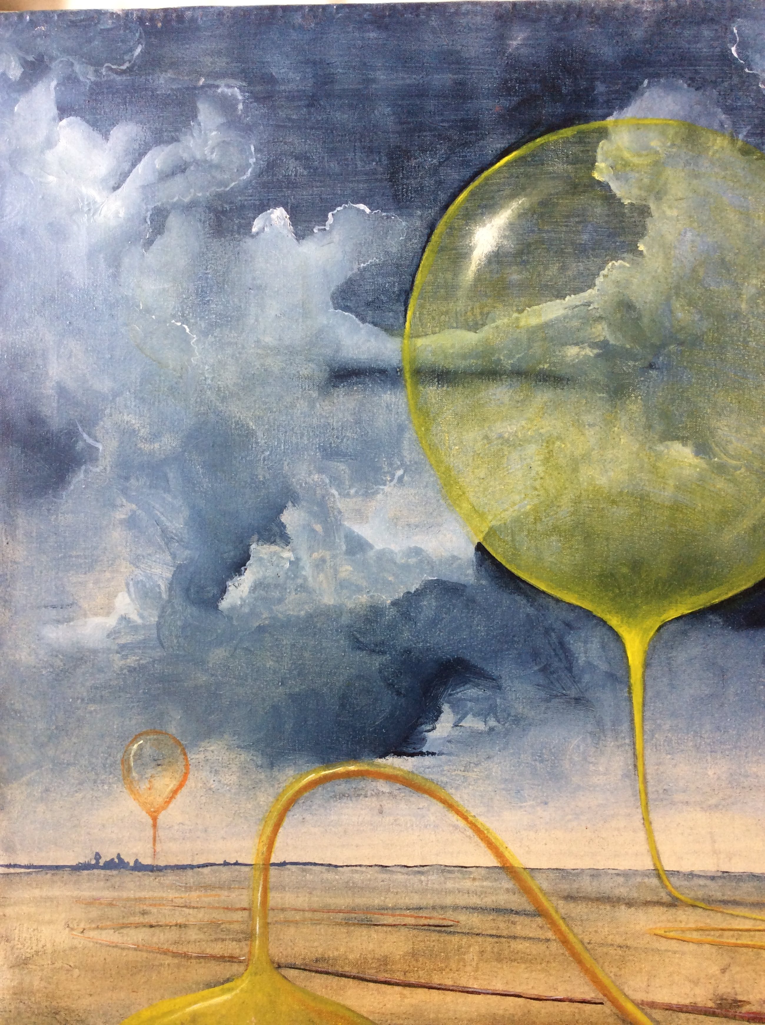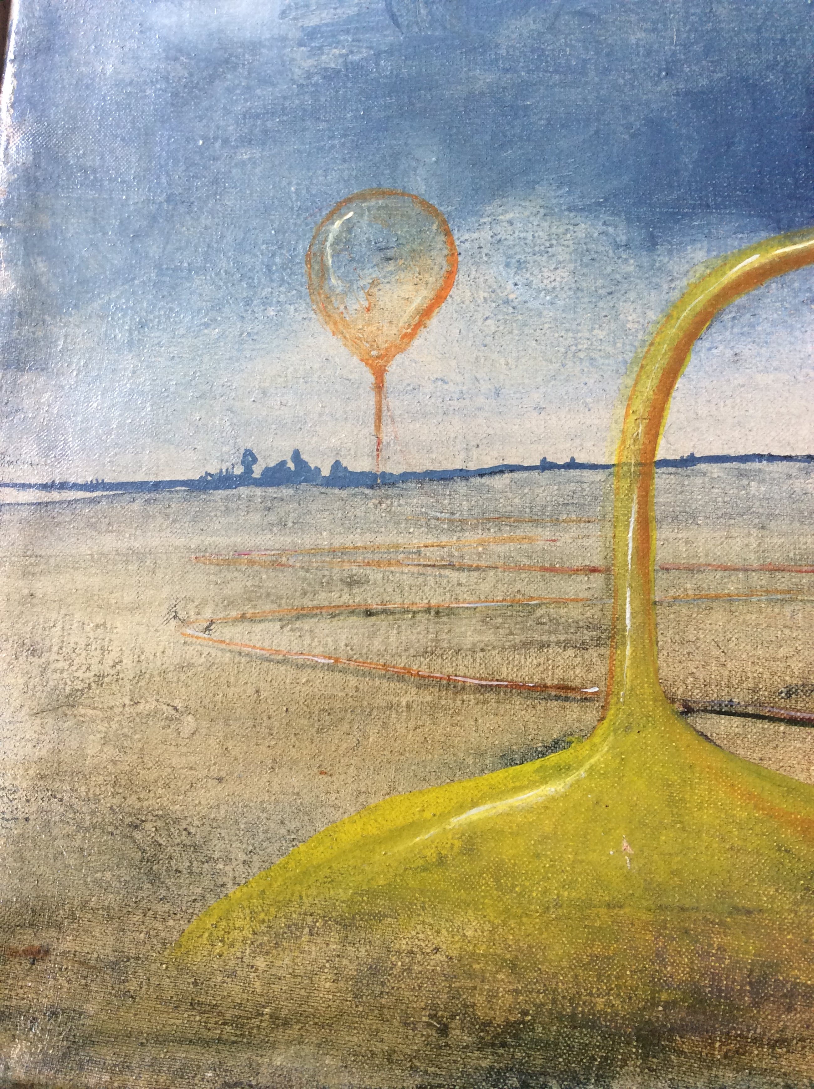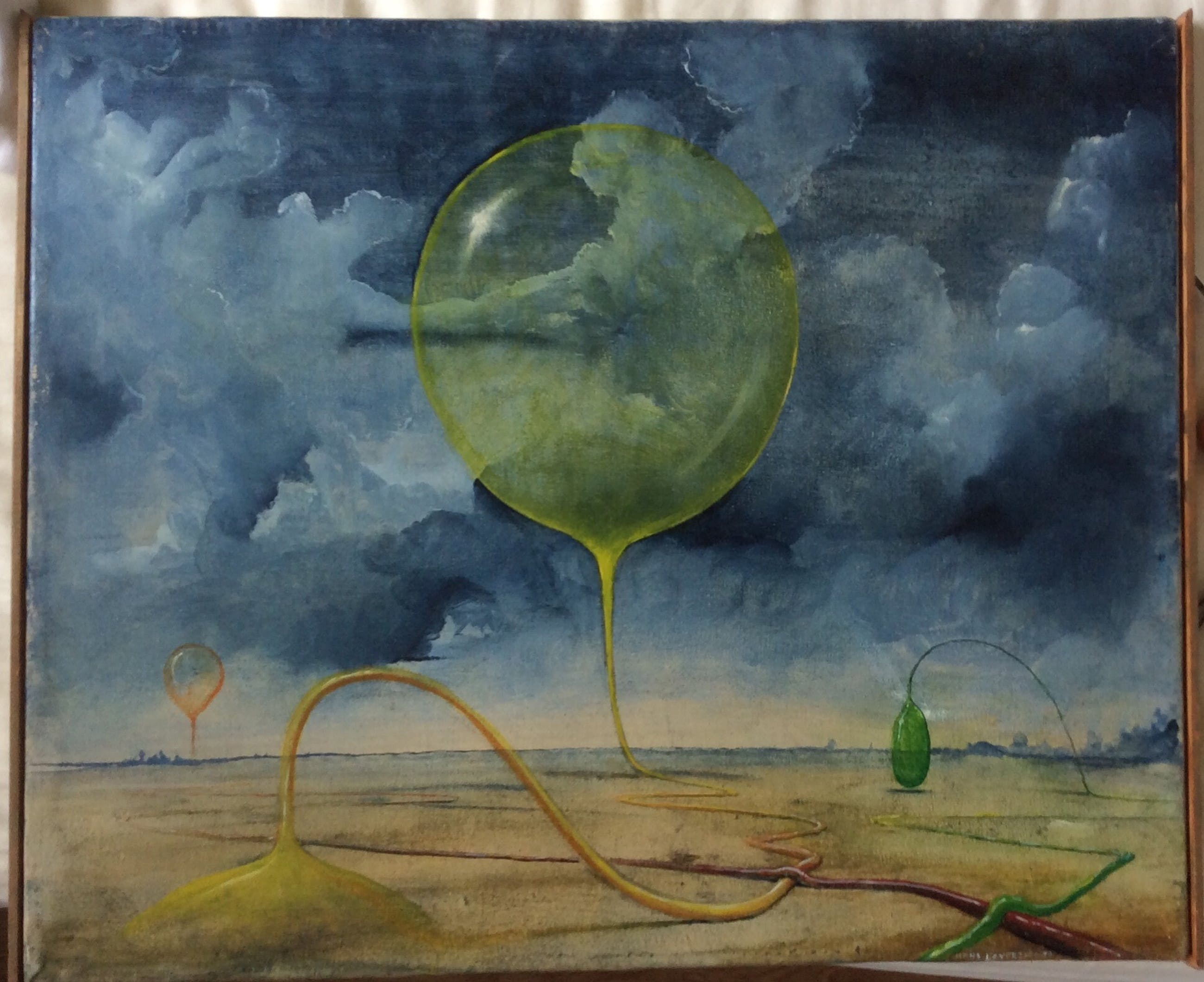 Apart werk uit 1970 van Frans Leyerzapf landschap met bubbels