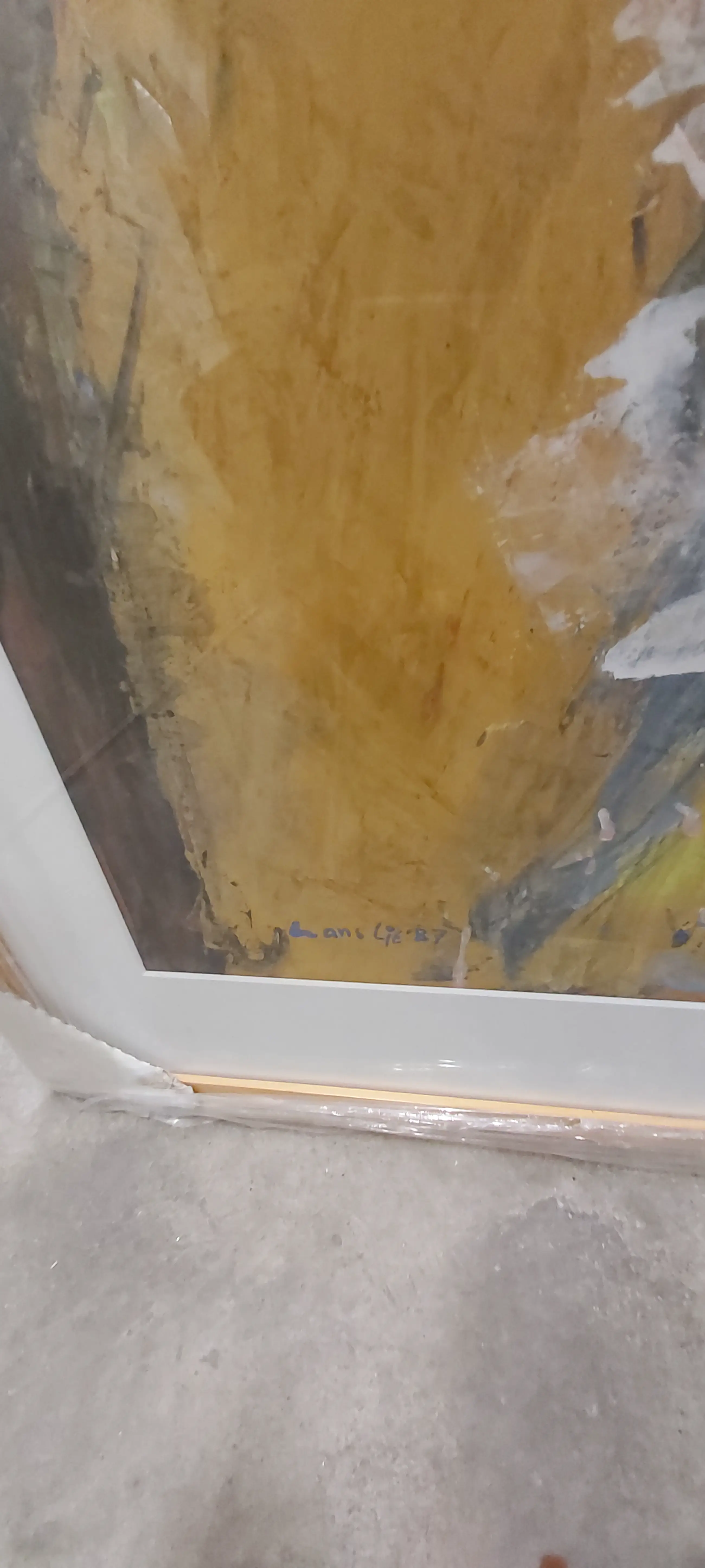 Hans Lie werkt voornamelijk in abstract-expressionistische stijl. Mooie zachte kleuren in dit werk.
