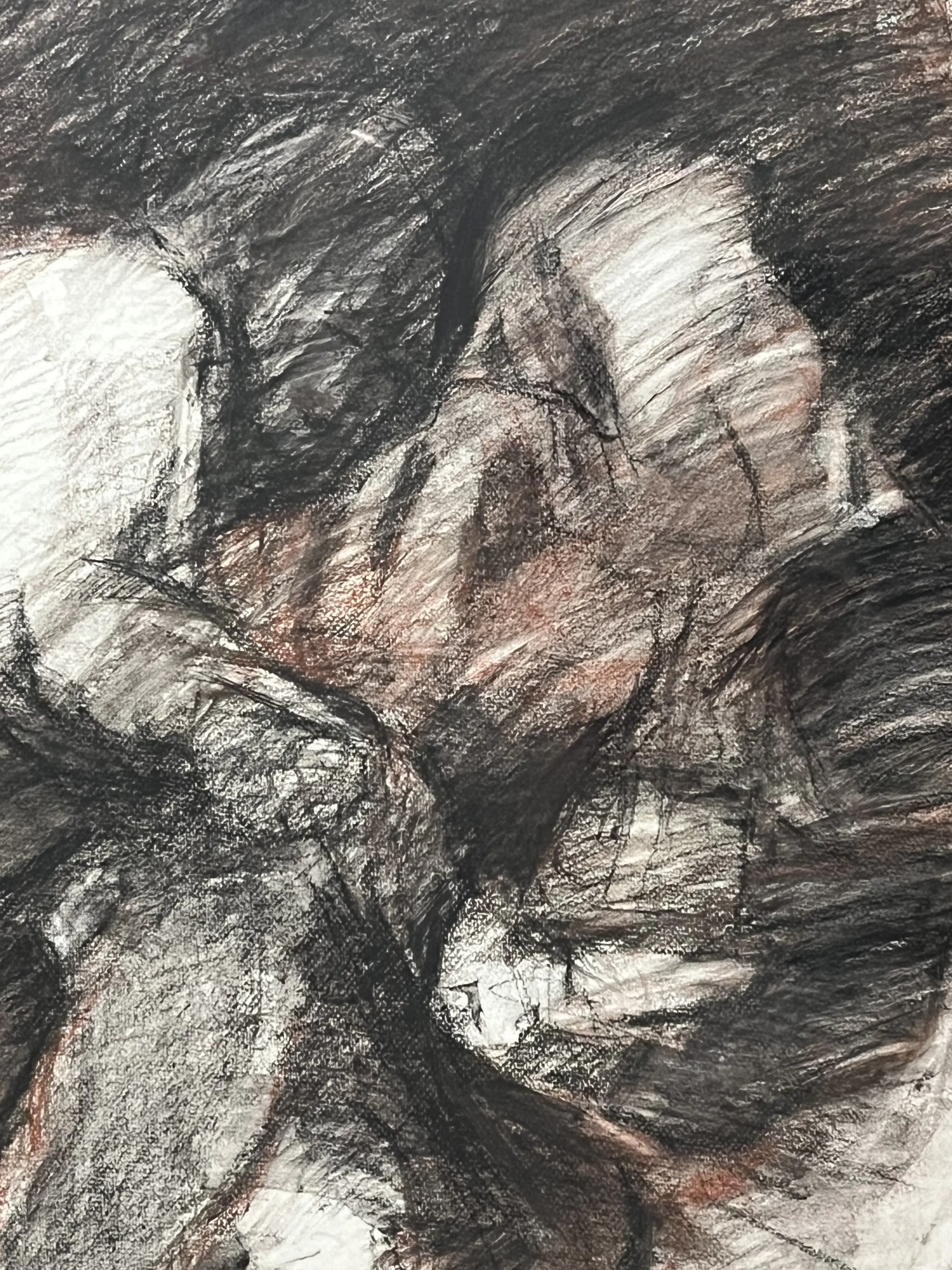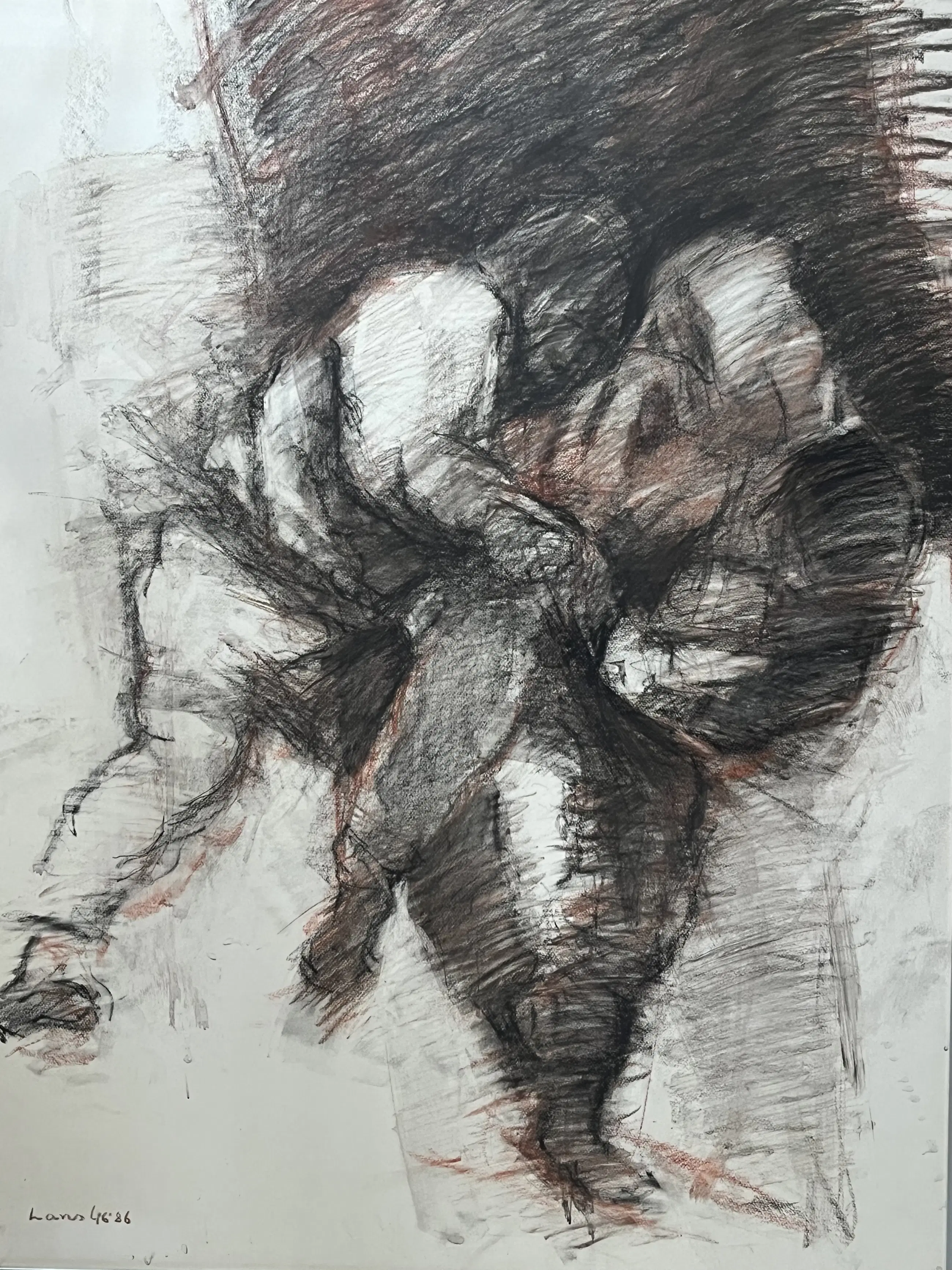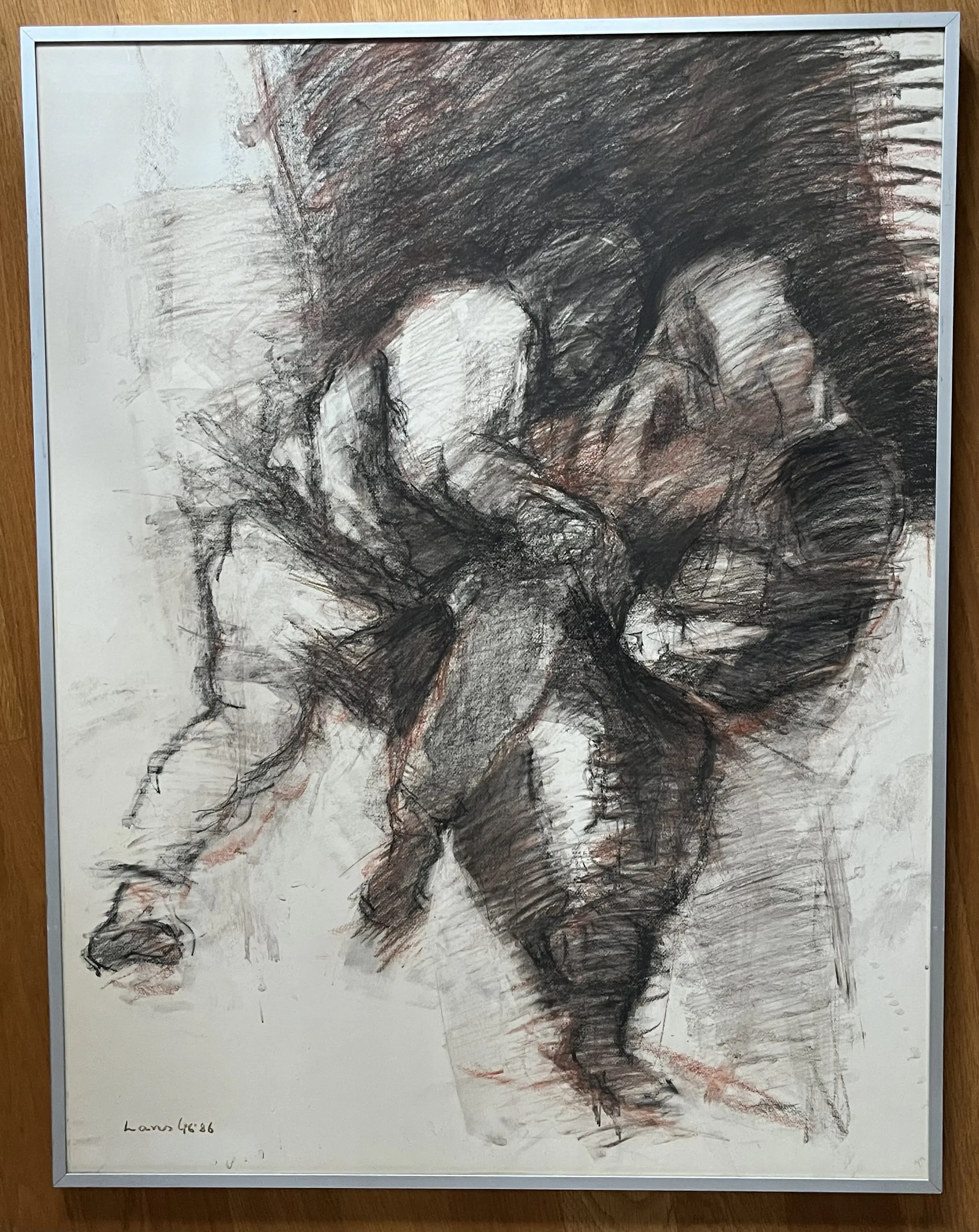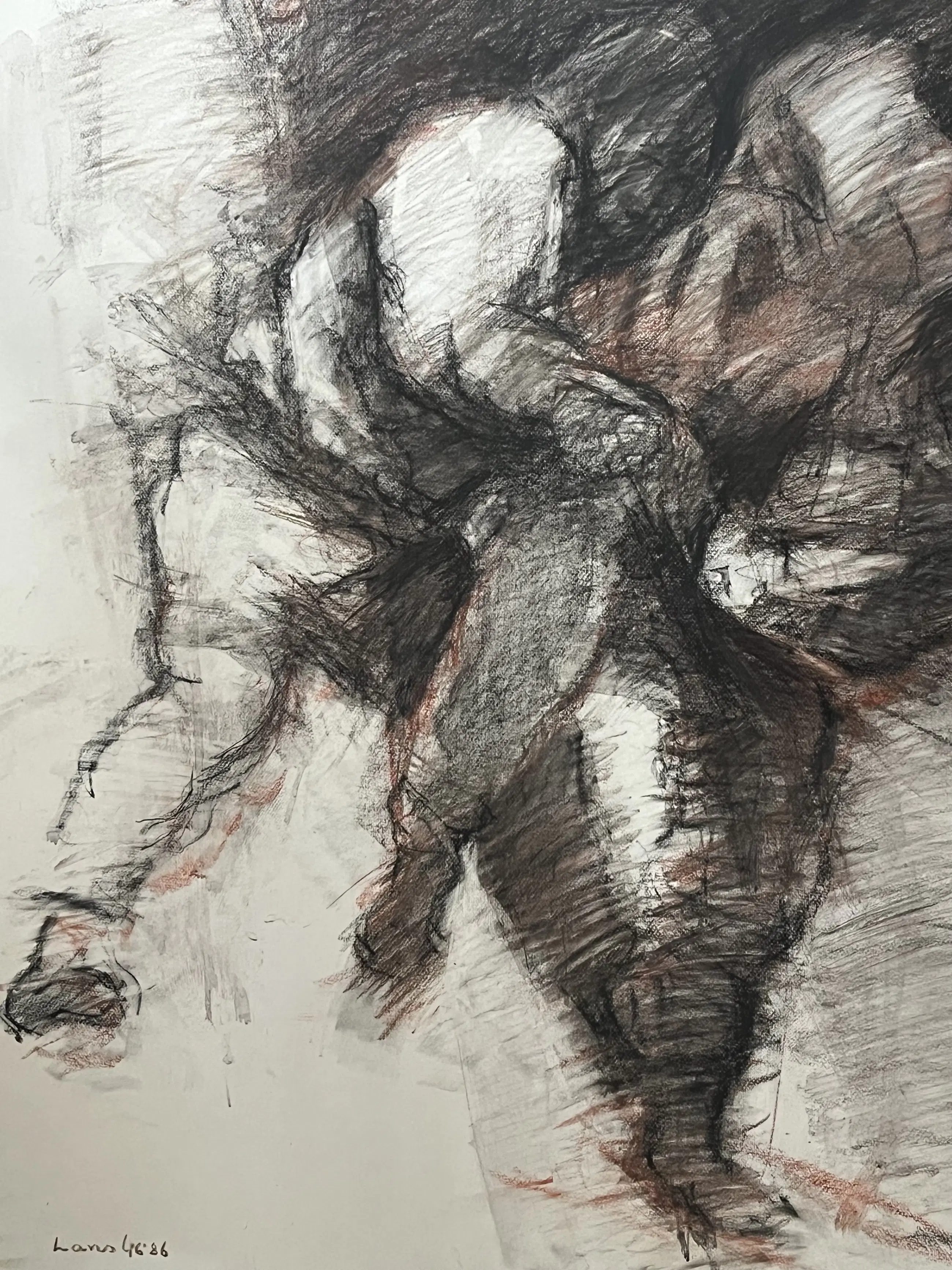 Fraaie gemengde techniek uit 1986. De kunstenaar heeft het werk als cadeau aan zijn neef gegeven. De tekening is koud gelijst. Verdiend een betere lijst. Afmeting 91,5 x 71 cm.