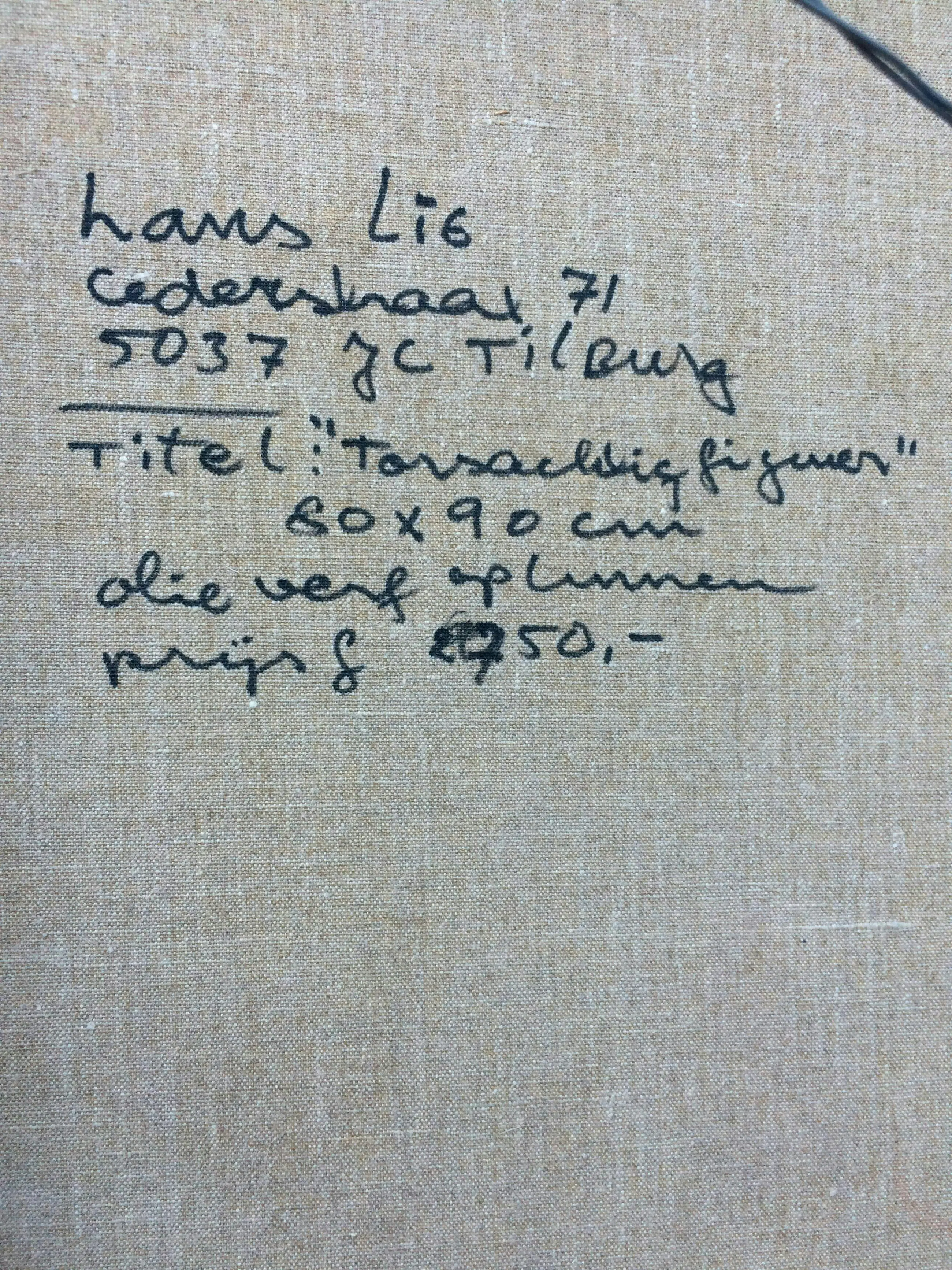 Gelaagd aangebrachte olieverf in ruwe penseelstreek. Het donkere silhouet van de torso tegen de lichte achtergrond lijkt naar de kijker gedraaid. Alleen de essentie van de gehurkte pose is afgebeeld. Deze abstracte torso is geschilderd in de hoogtijdagen van de kunstenaar in zijn typische suggestieve stijl.