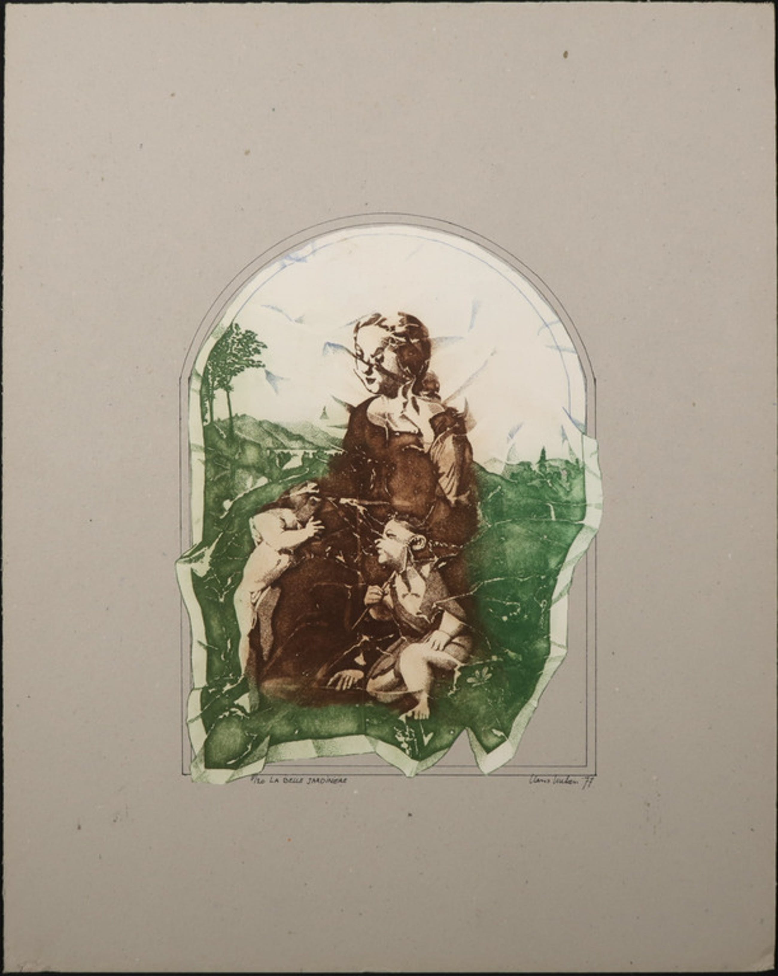 Conditie: Beeld in goede staat. Het katoen laat aan de bovenzijde los van het karton en in de hoeken van het karton lichte beschadiging