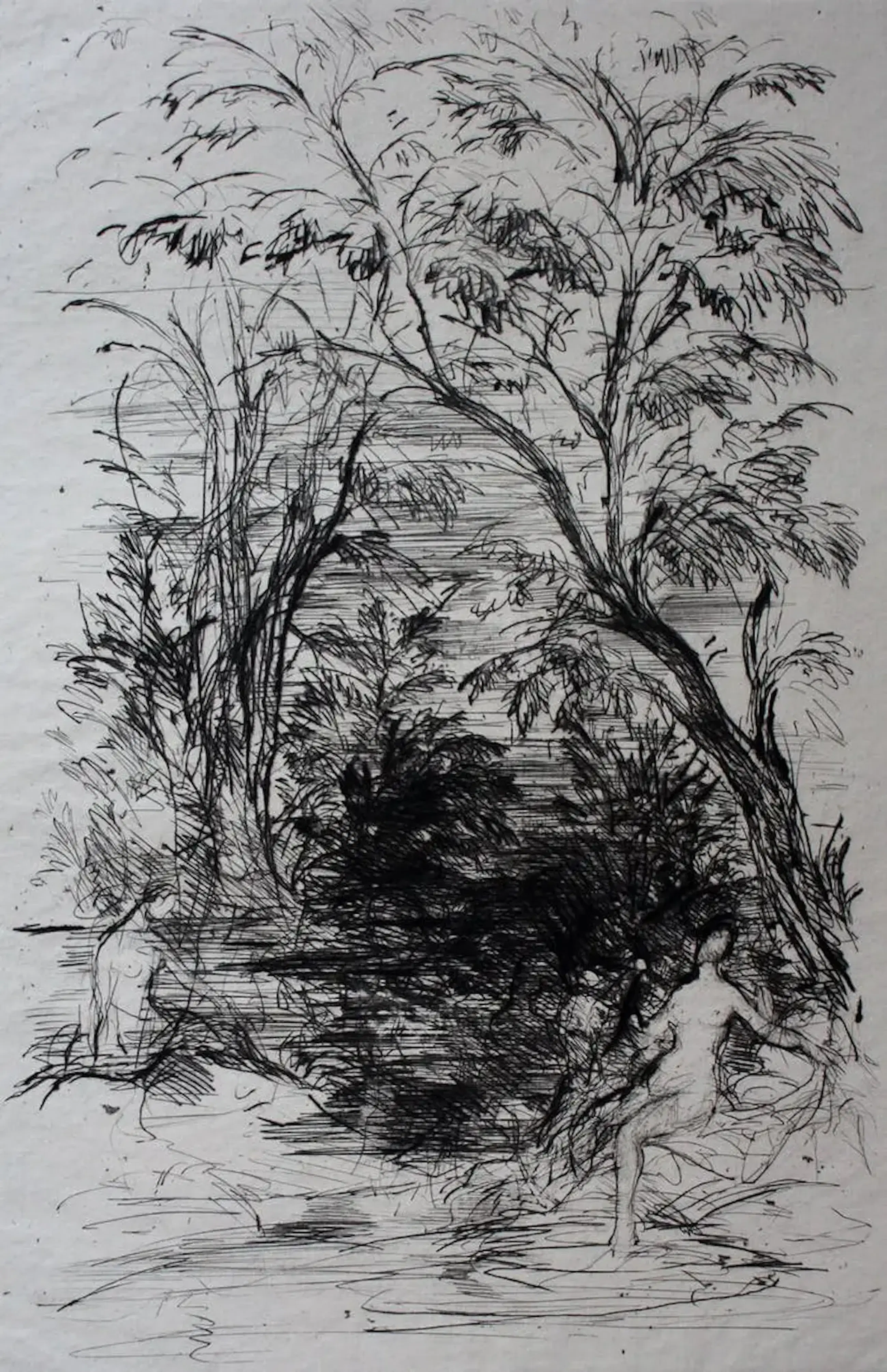 Droge naald ets van Hans Meid. Afmetingen blad: H50 x b33cm. Afmetingen voorstelling: H27x b18cm. Het werk is, rechts onderaan, met potlood, gesigneerd door de kunstenaar. De authenticiteit van het aangeboden werk wordt volledig gegarandeerd. Een certificaat van echtheid kan, op aanvraag, worden gemaild.