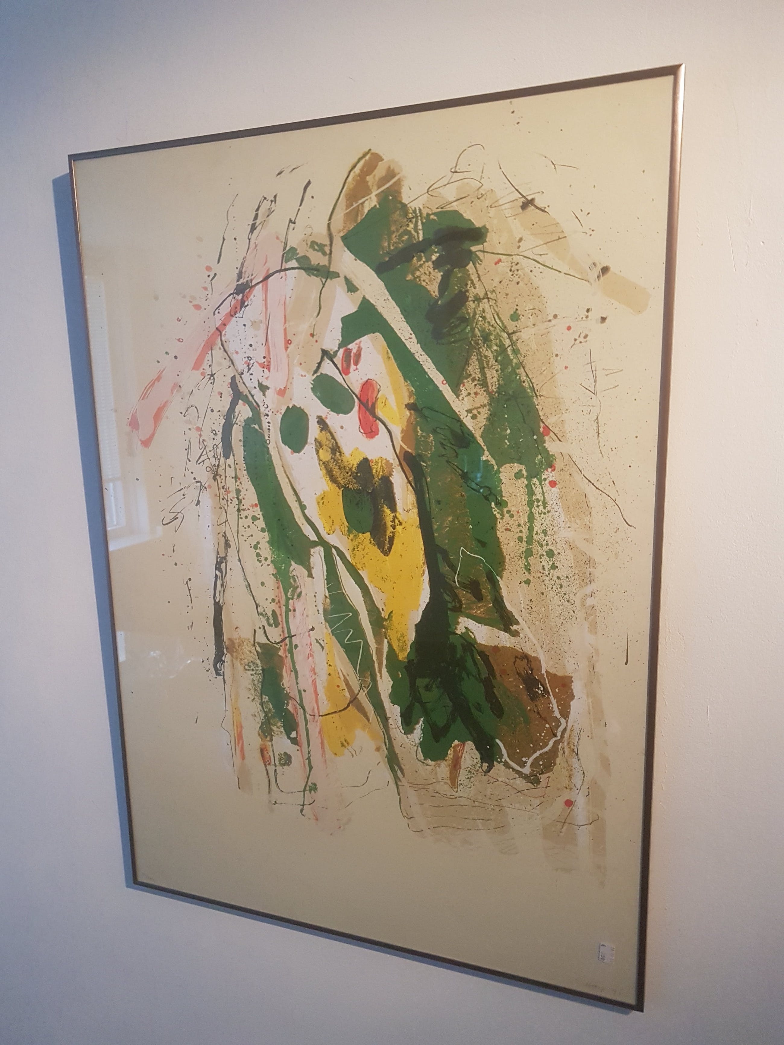 Prachtige abstracte zeefdruk ingelijst maten van 70x100 cm ,genummerd en gesigneerd uit het jaar 1990.