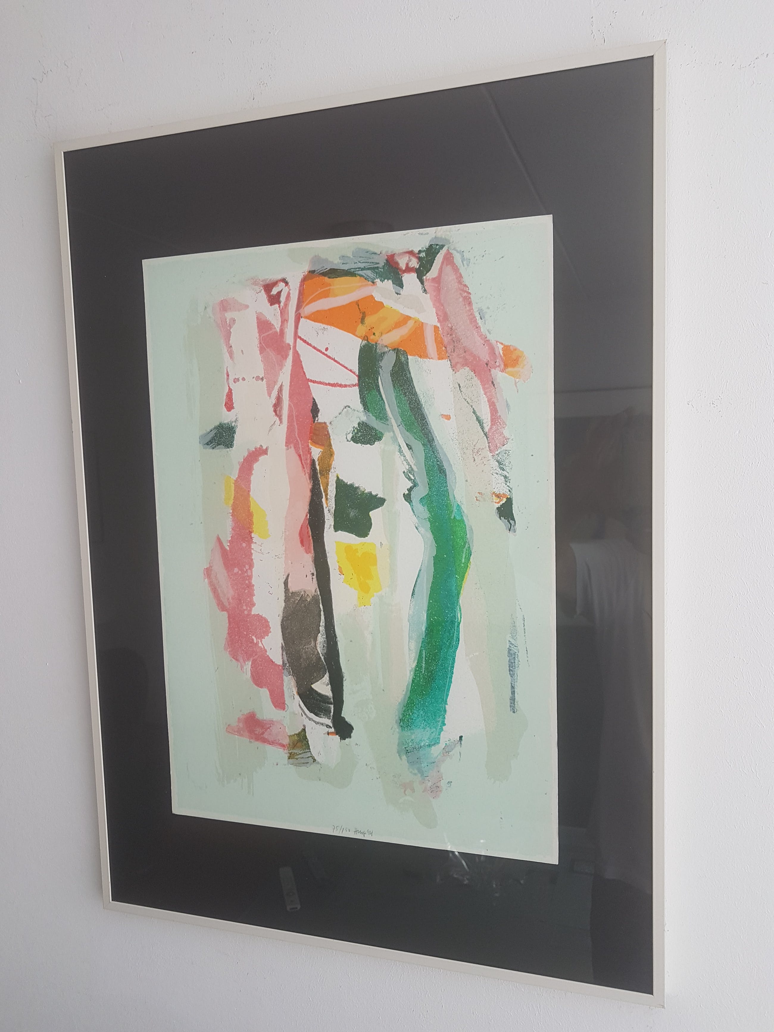 Prachtige abstracte zeefdruk ingelijst maten van 70x50cm, genummerd en gesigneerd