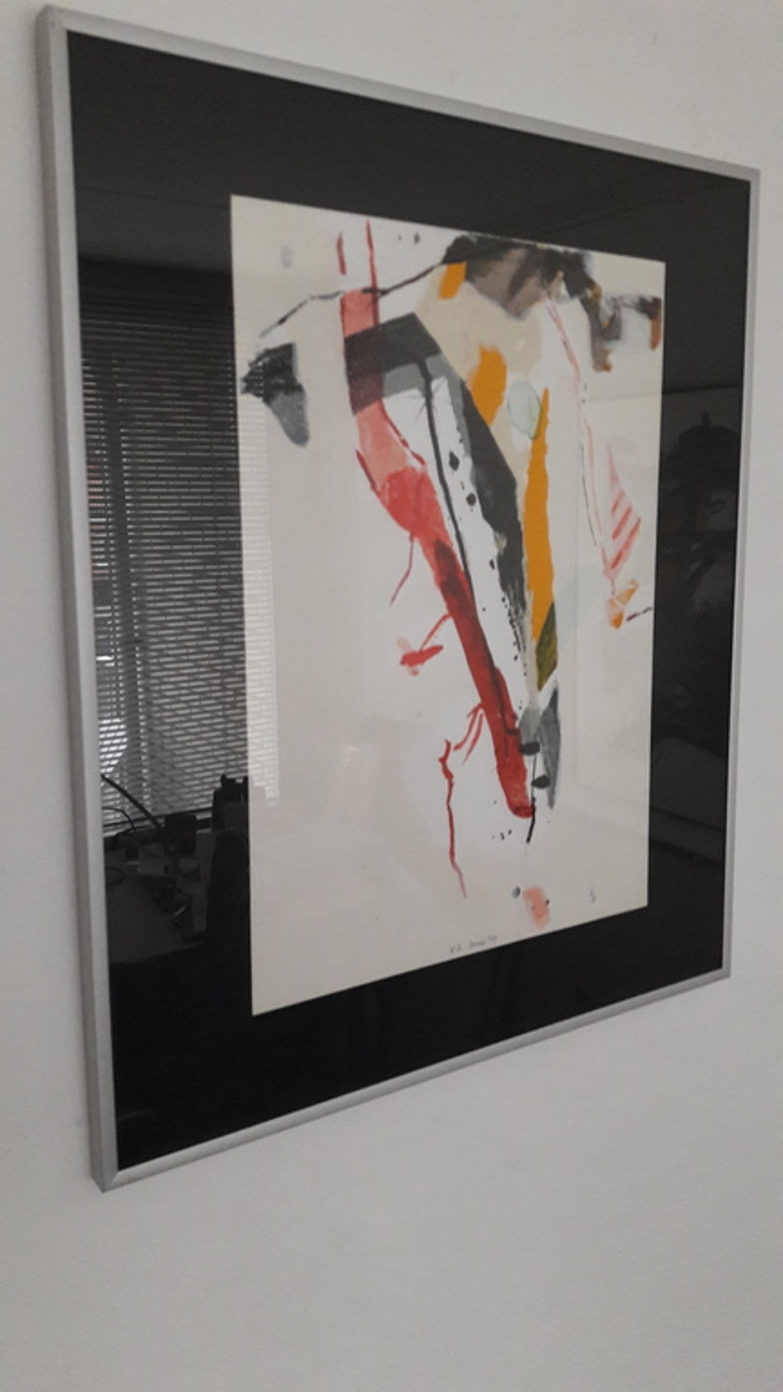 schitterende abstracte zeefdruk van hans Meyer petersen.ingelijst maten 61x51 cm , genummerd en gesigneerd.