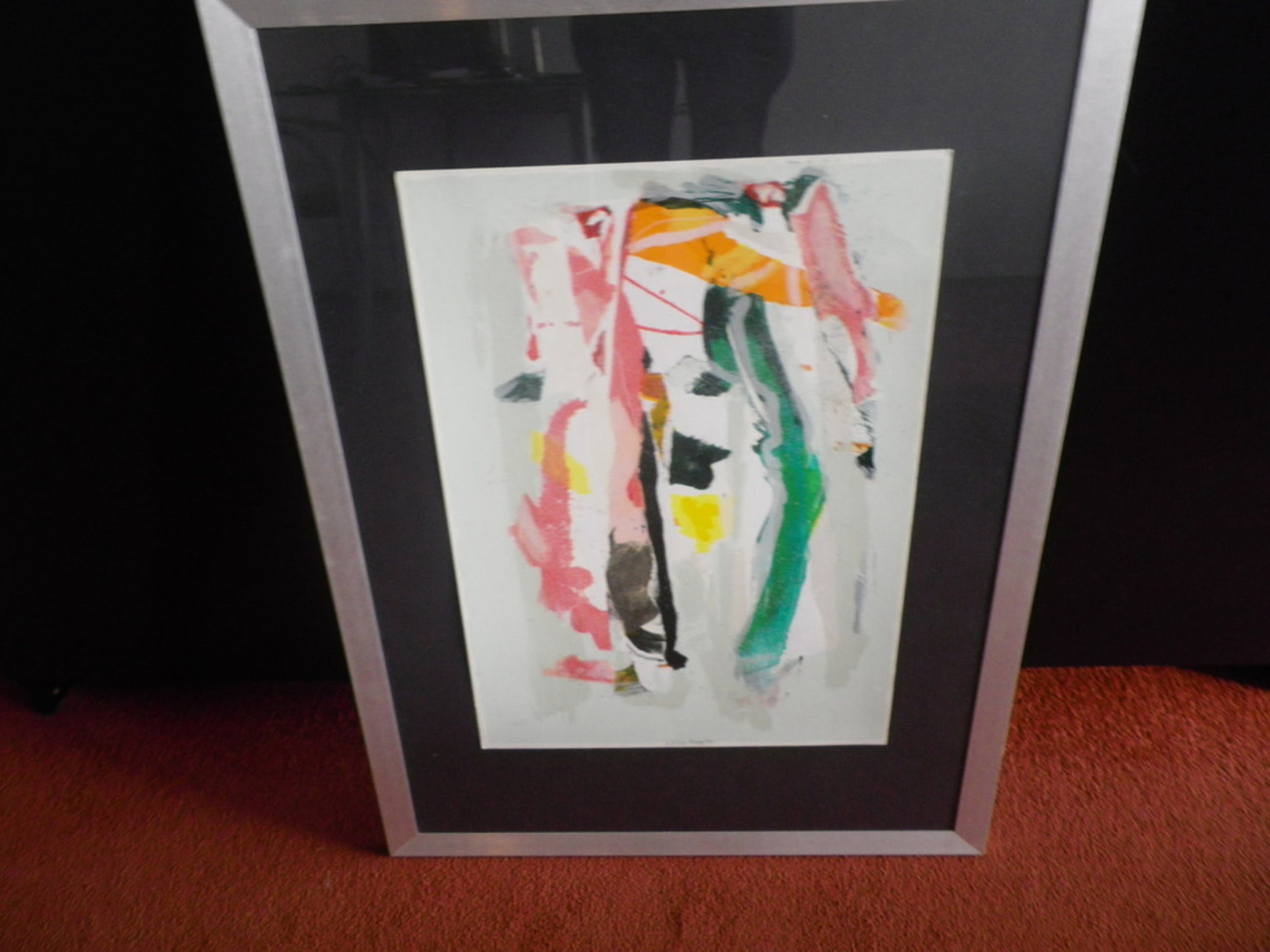 schitterende abstracte zeefdruk ,ingelijst 80x60 cm ,genummerd en gesigneerd.