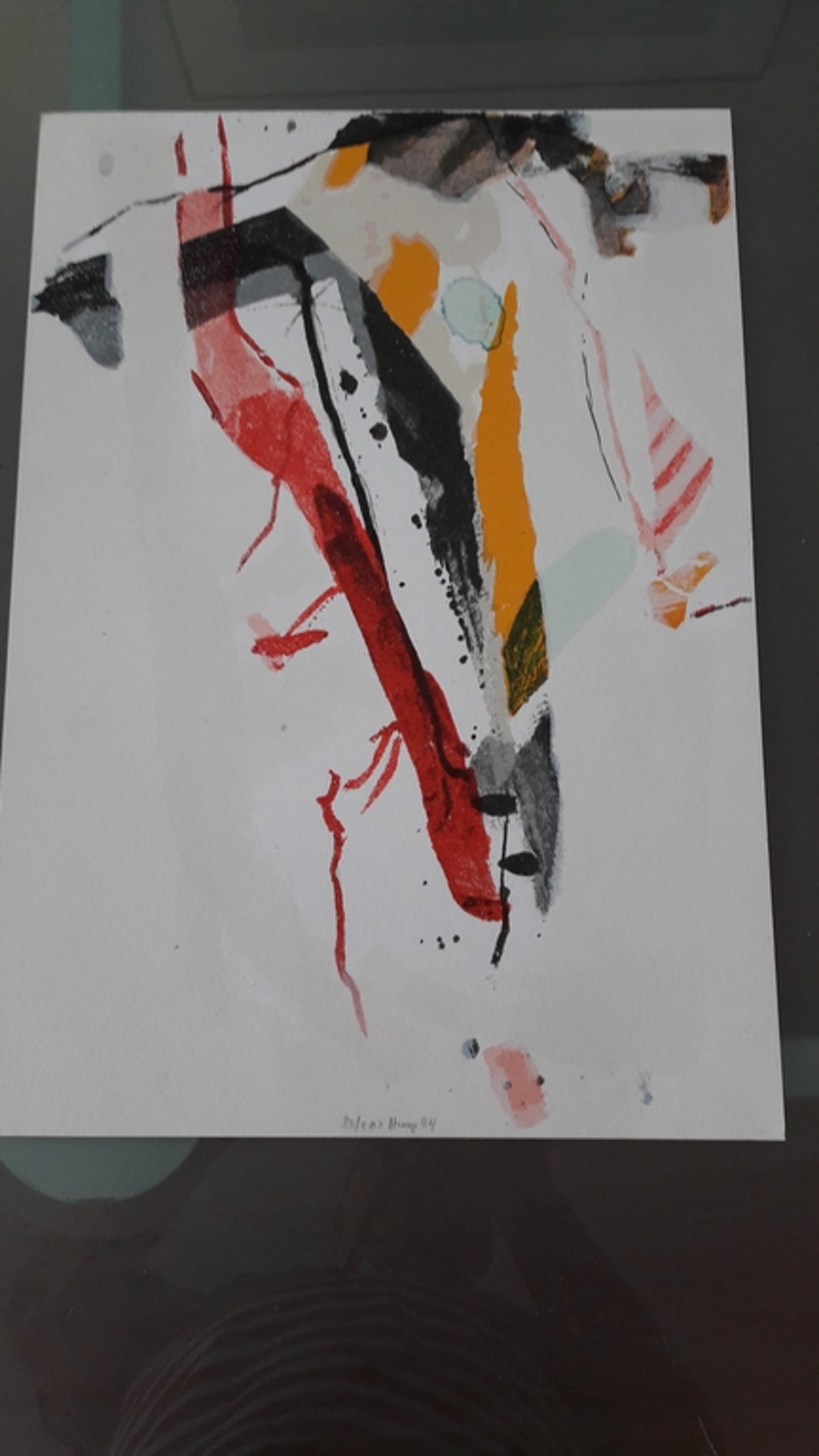 schitterende abstracte zeefdruk niet ingelijst maten 50x35 cm genummerd en gesigneerd.