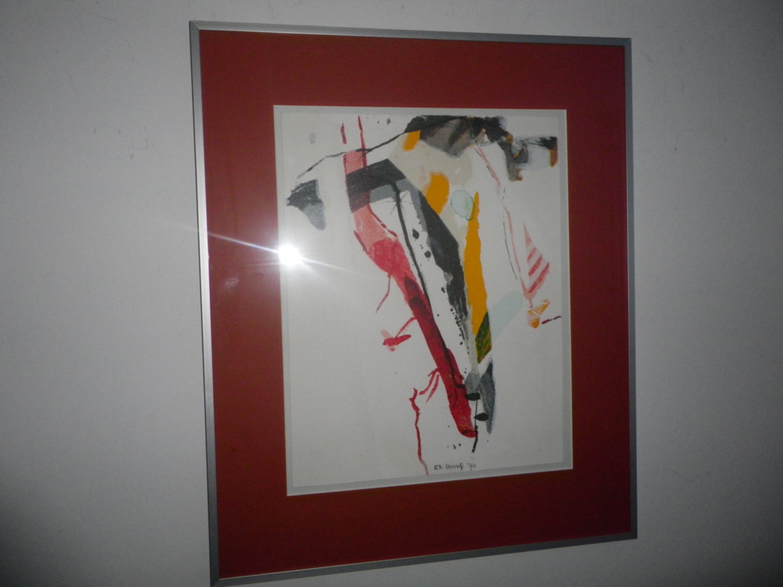 mooie abstracte zeefdruk, ingelijst 50x60 cm , genummerd en gesigneerd.