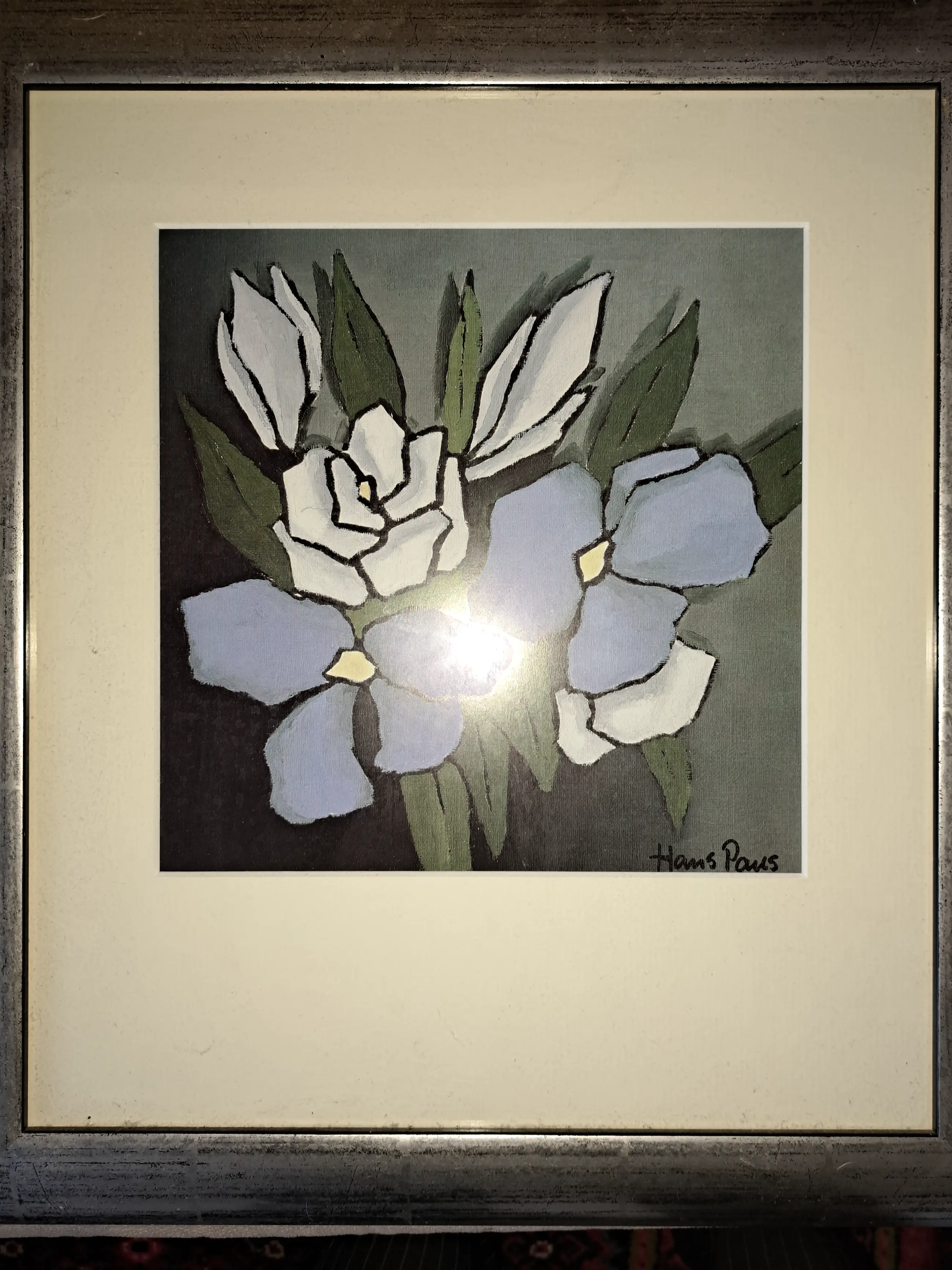 Een werk van Hans Paus, ingelijst met passe-partout en een mooie zilverkleurige lijst 4cm breed.