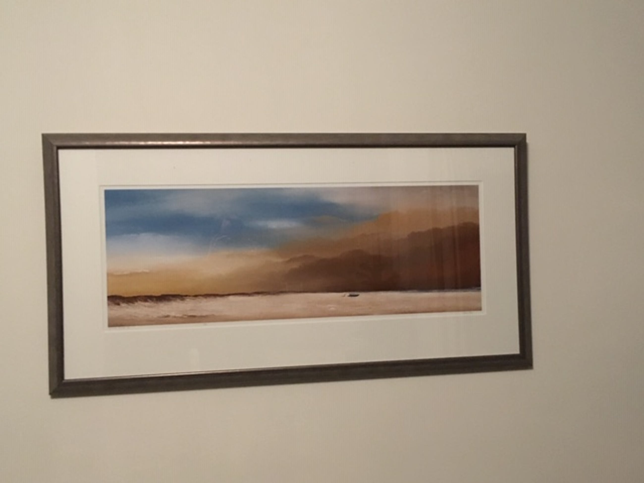 In goede conditie inclusief lijst met standaard glas en ophangsysteem aan achterzijde.