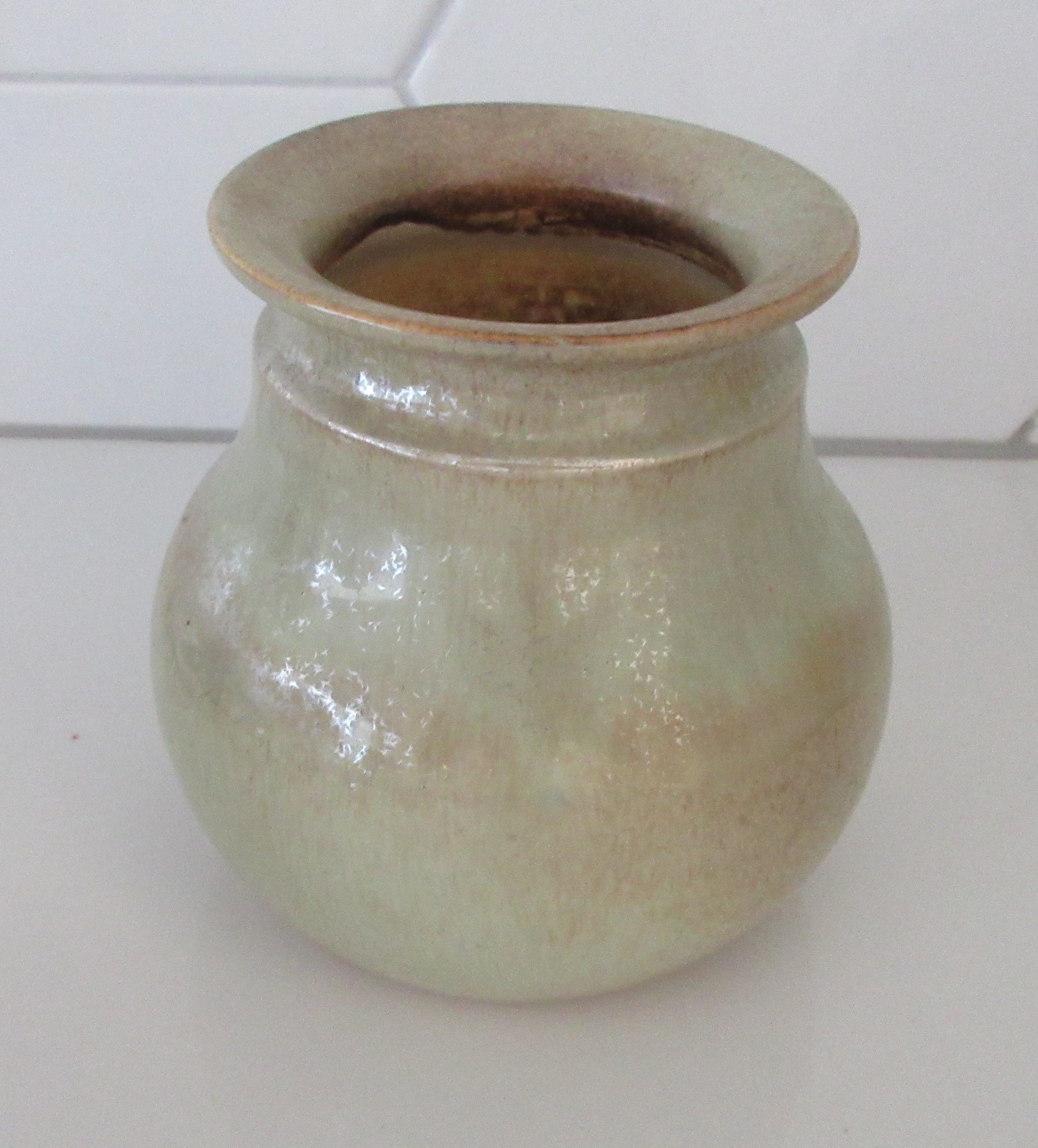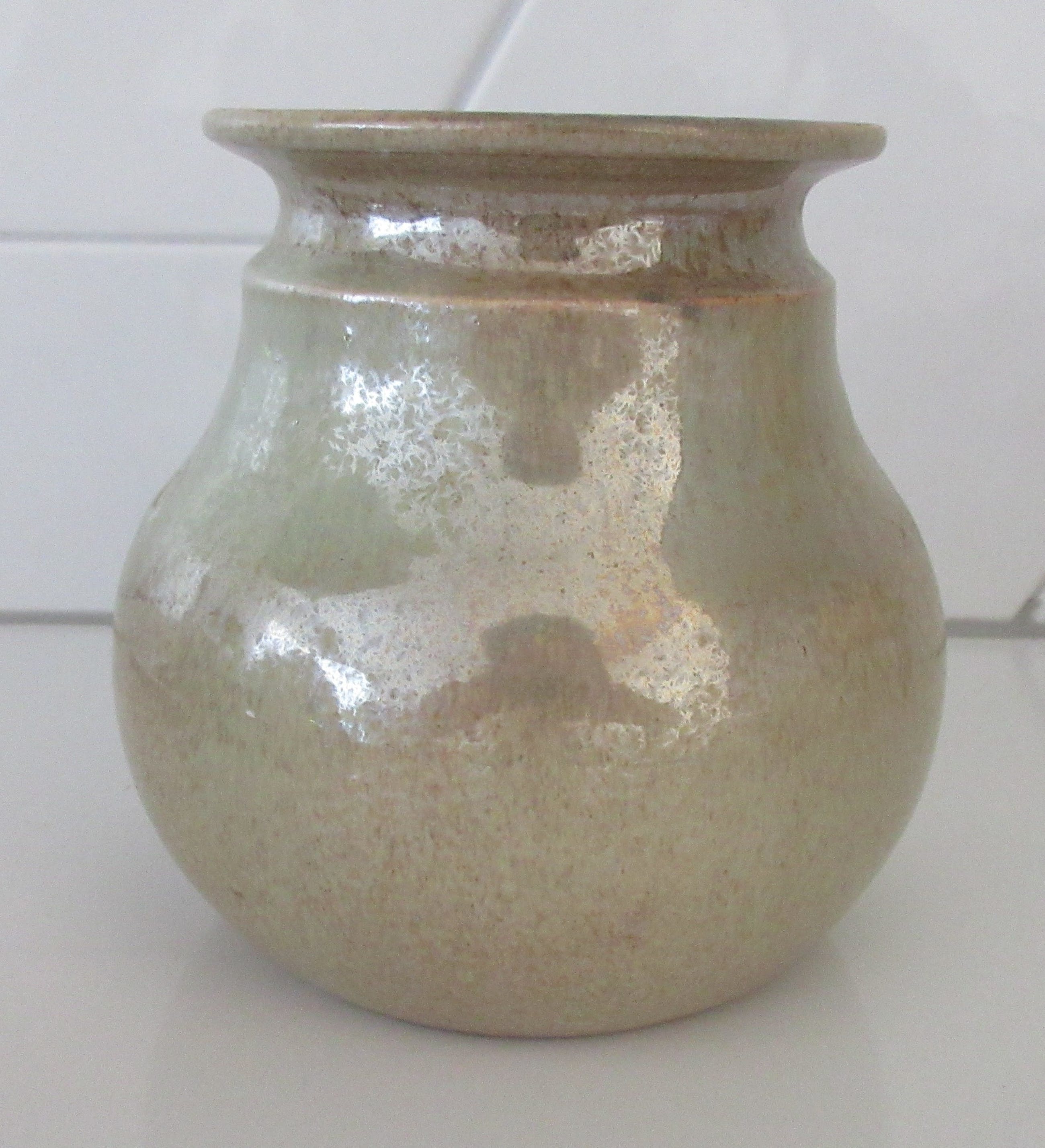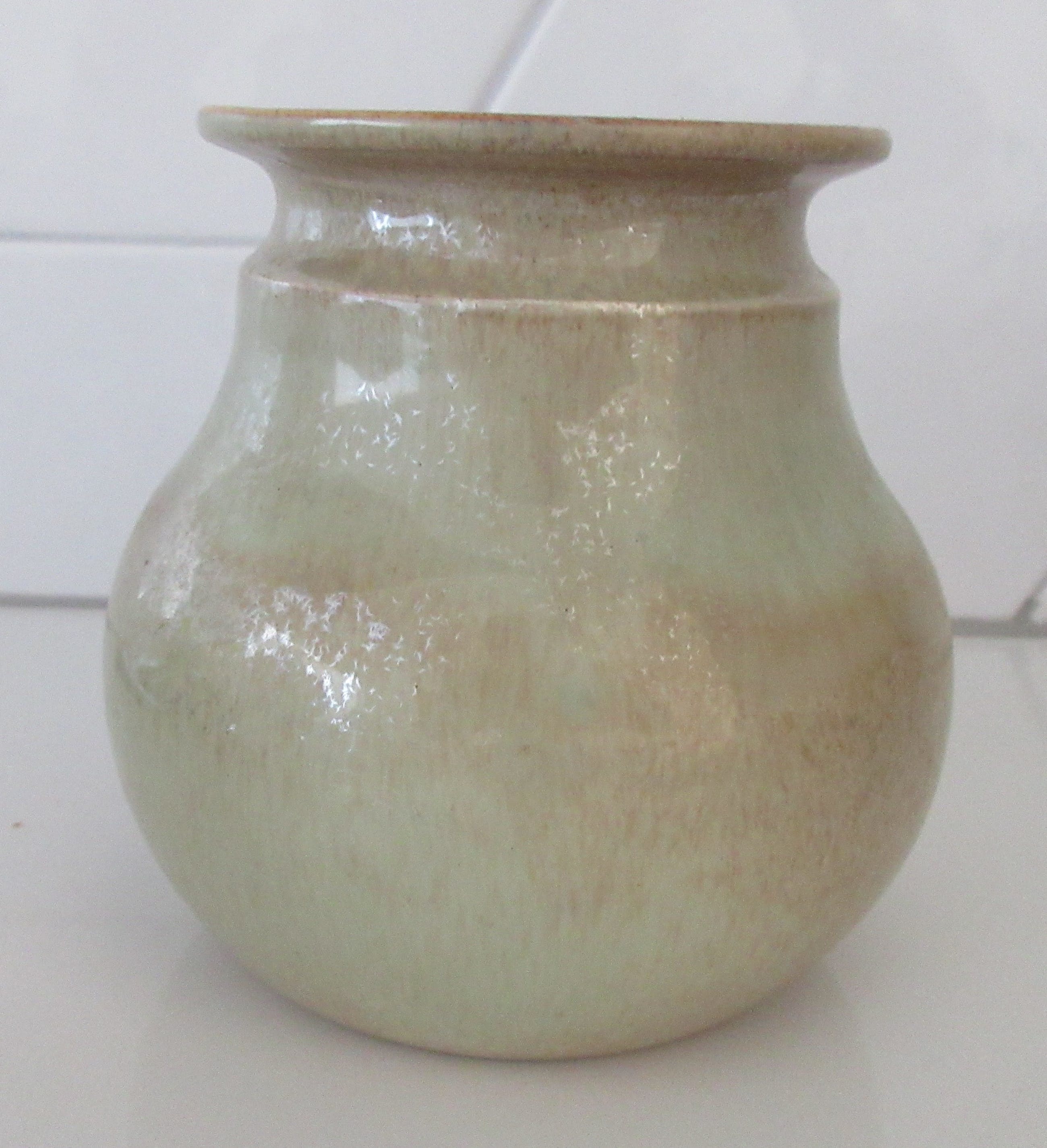 Studio keramische irise en kristalijne vaas. Aan de onderzijde gesigneerd Hans Mader. In prima onbeschadigde conditie.