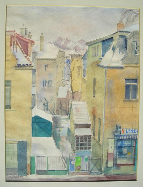Hans Scheil - Stadthäuser mit Schneeresten, Aquarell