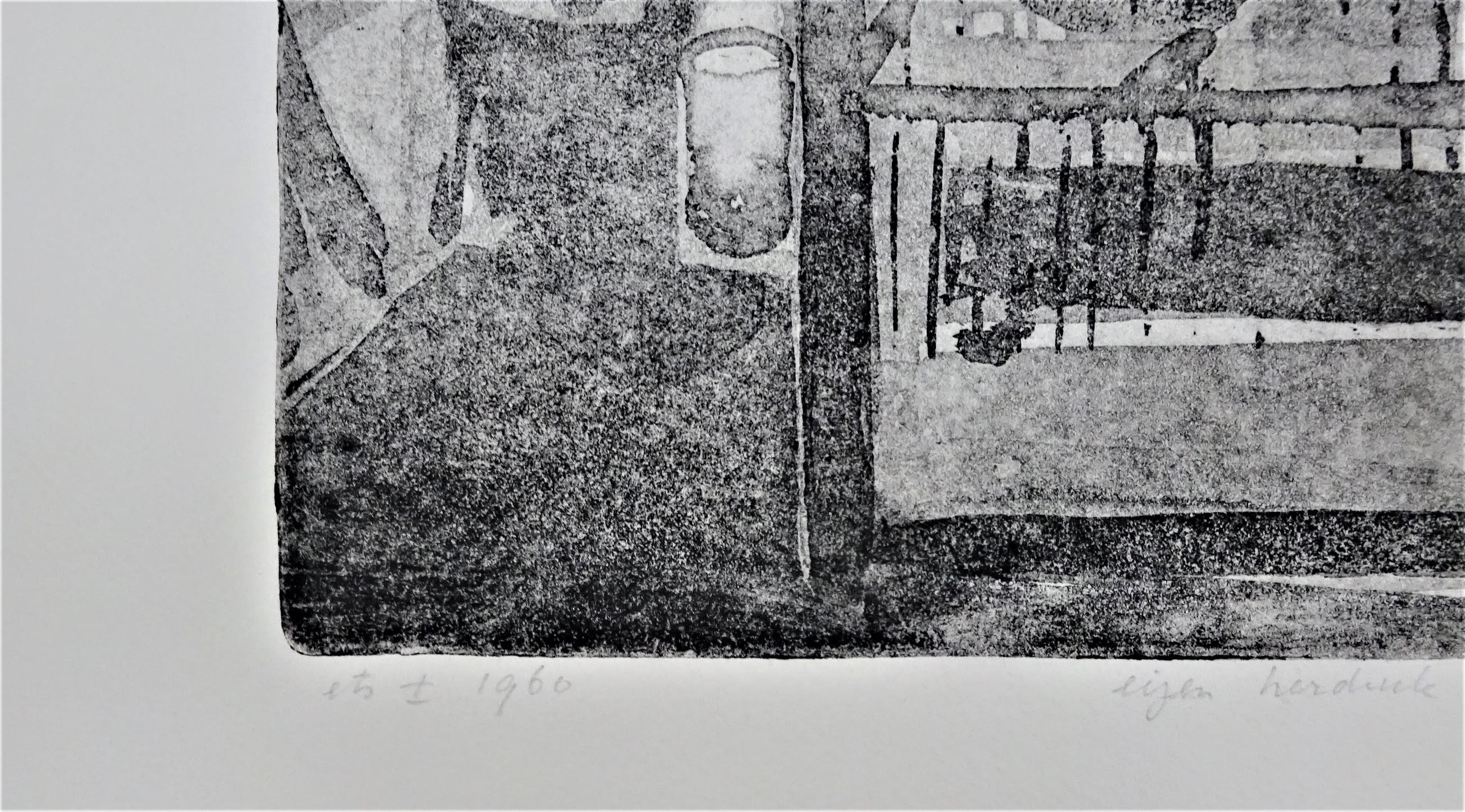 De ets is gemaakt in 1960. Dit betreft een eigenherdruk uit het jaar 2000. Bladgrote: 37,5 x 57 Oplage: 18 / 50 Handgesigneerd met potlood.