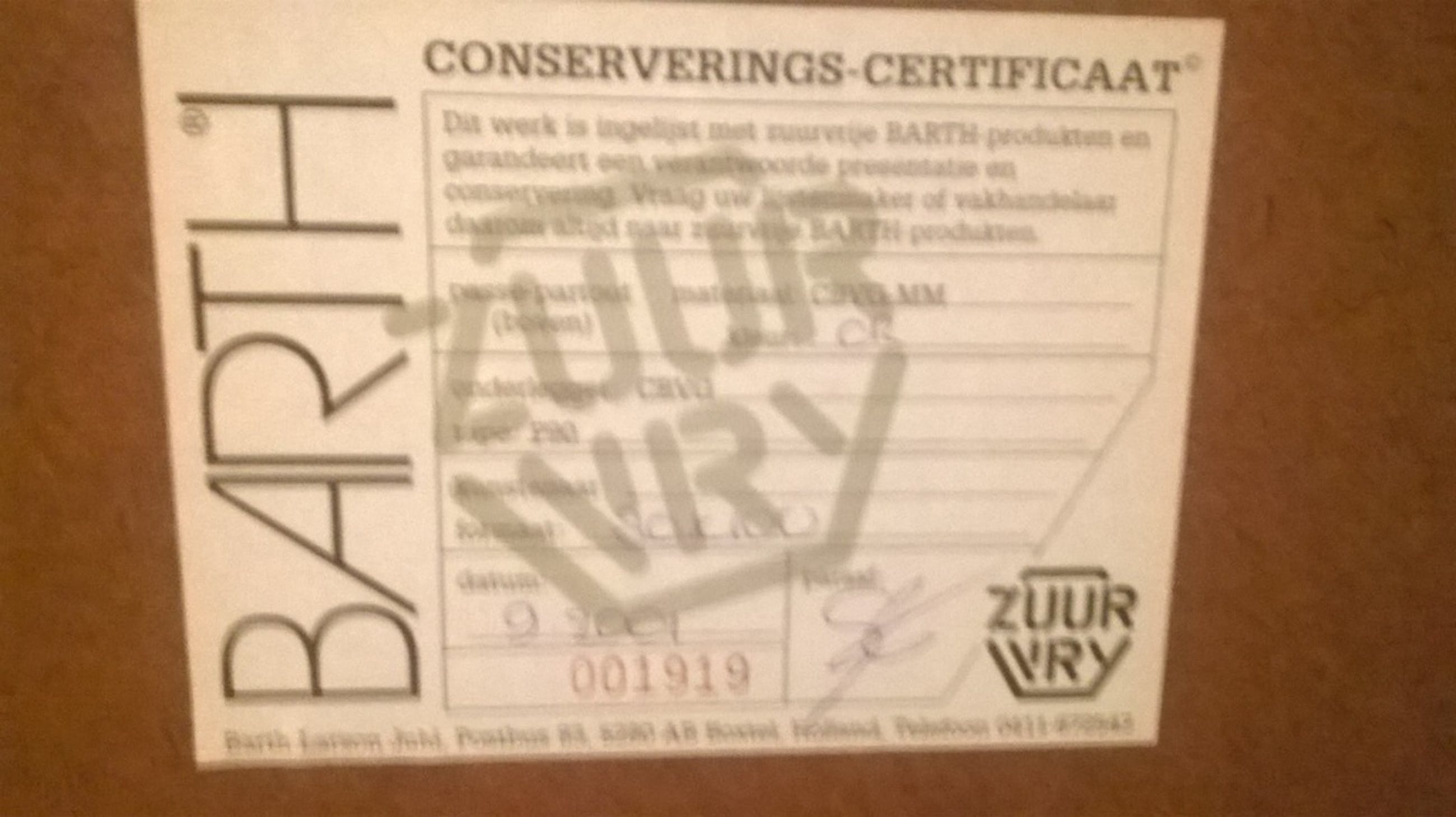 | Afhalen | Het werk is af te halen op locatie. Als koper dient u zelf verpakkingsmateriaal mee te nemen. De locatie is: Putten, Nederland |