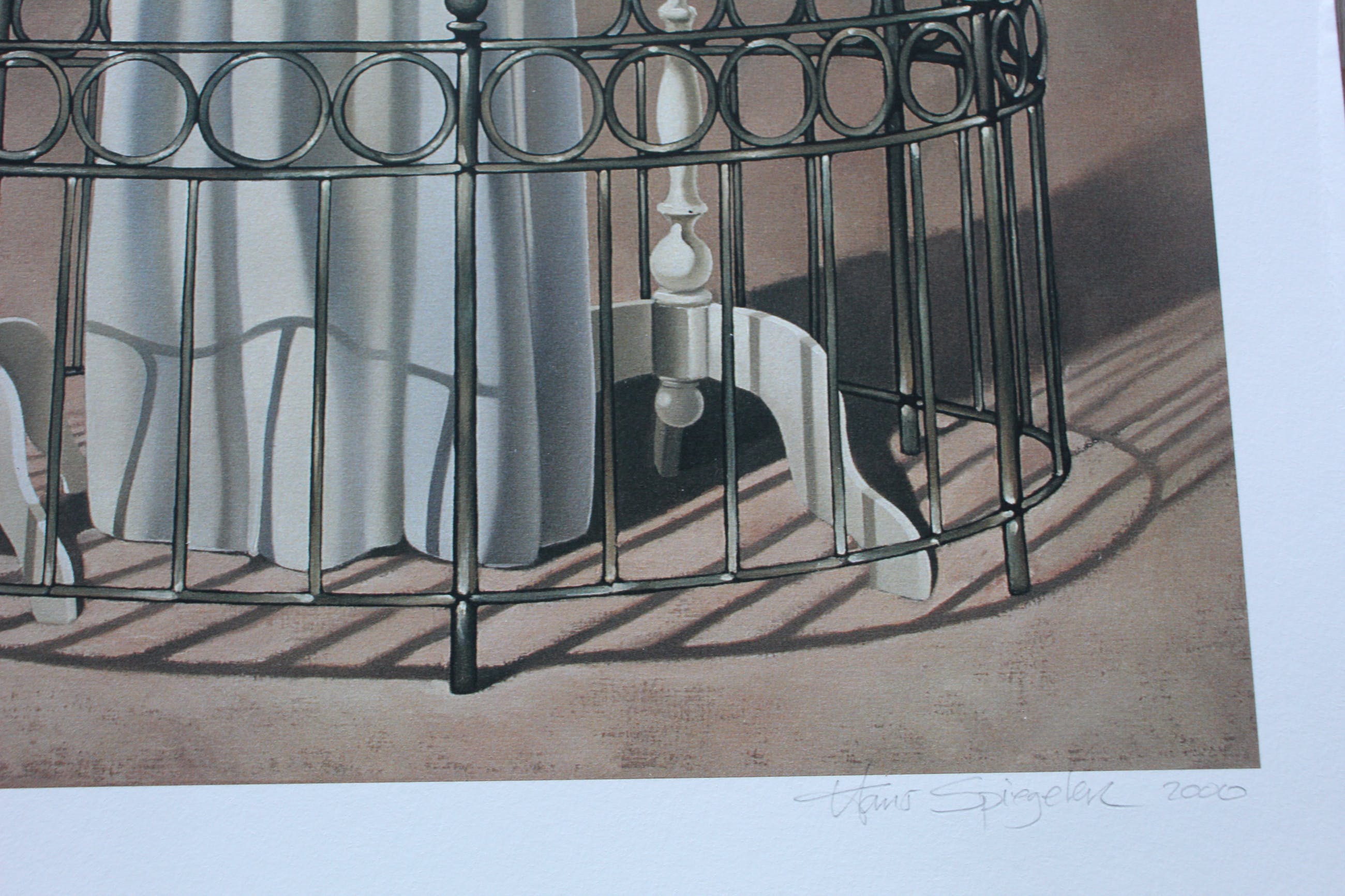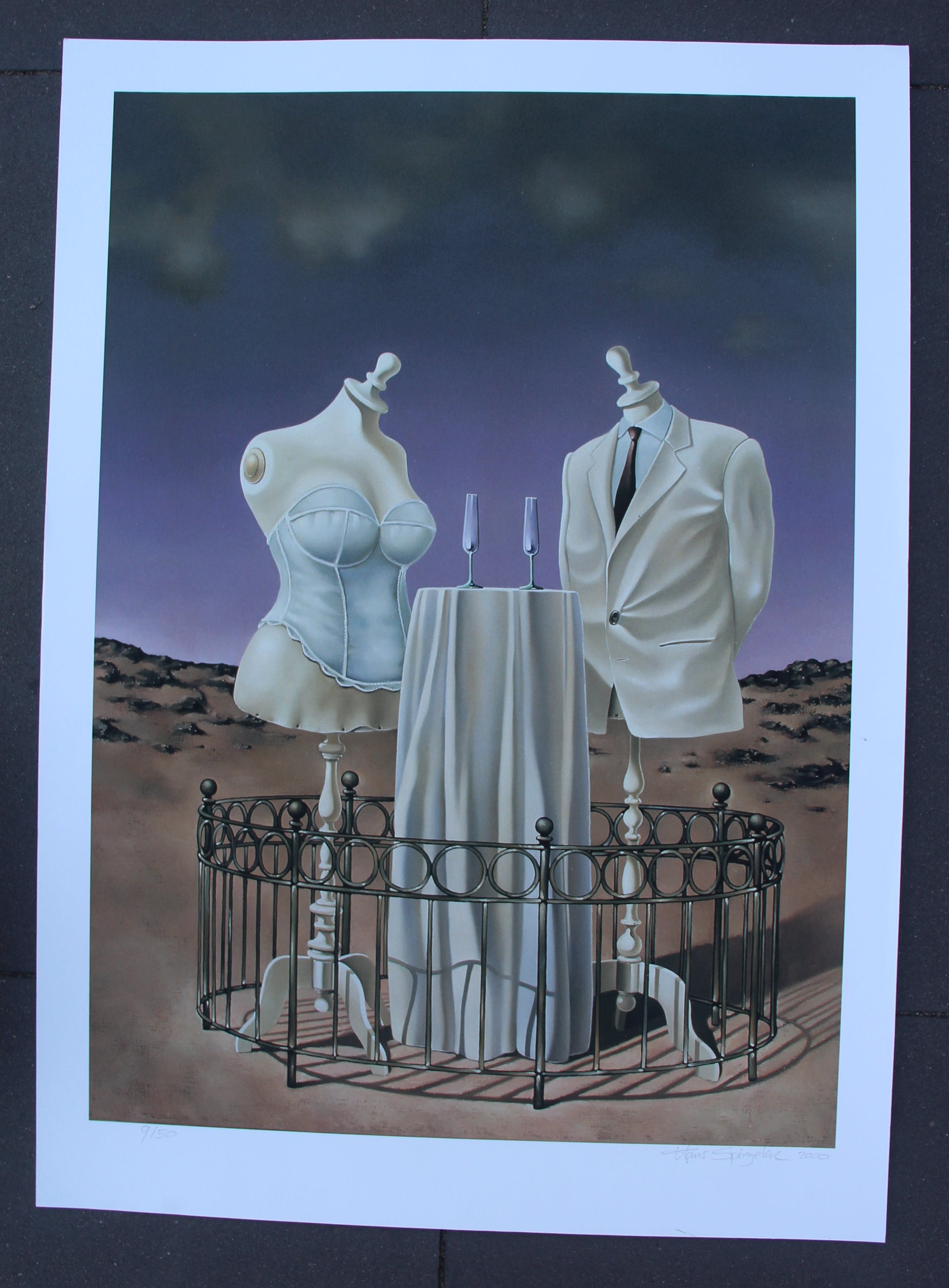 Mooie zeefdruk van Hans Spiegeler uit het jaar 2000. Nummer: 9/50. Afmeting voorstelling: H68 x b48,5 cm. Deze zeefdruk werd cadeau gedaan bij huwelijksfeesten door de vorige eigenaar. Hij heeft deze speciaal hiervoor laten maken.